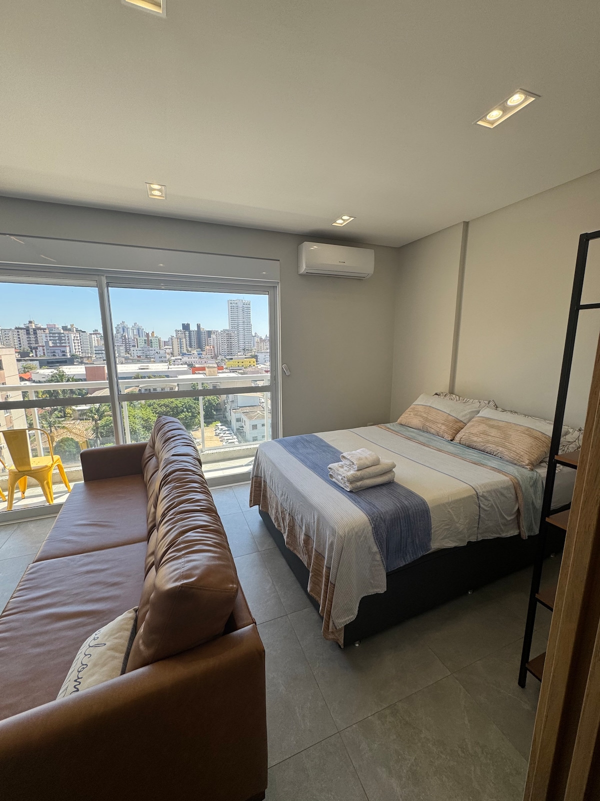 At Studio Spain, we designed a project inspired by the artistic veins of the country. Almodóvar’s colors meet Gaudí’s forms — a filmmaker and an architect who, in different eras, left a dramatic mark on Spanish aesthetics. Our 38m² studio is fully equipped with everything you need for a comfortable and pleasant stay. Strategically located in downtown Criciúma, it’s just a short walk from markets, pharmacies, hospitals, shops, restaurants, and Criciúma’s stadium.