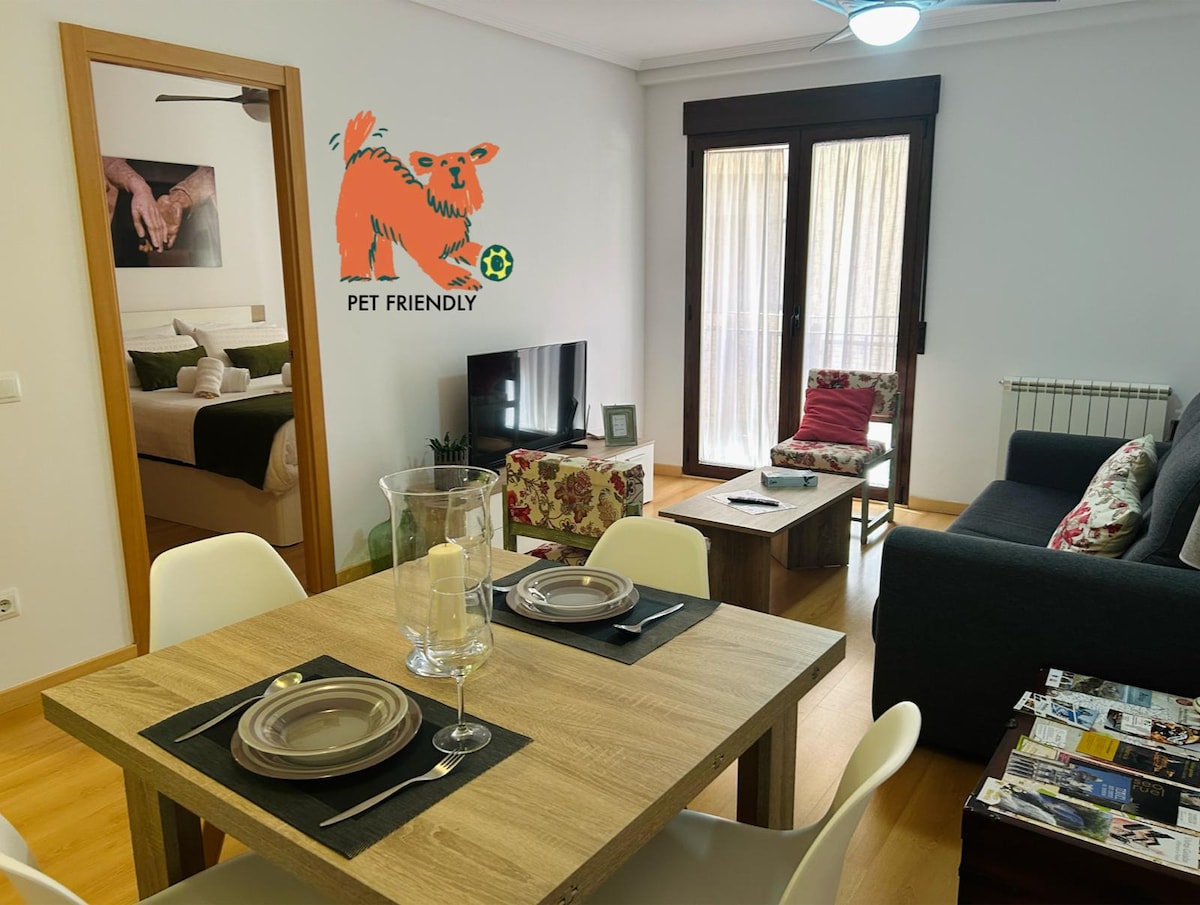 Apartment in Teruel in the City of Mudejar and Lovers. It has an unbeatable location to visit the most emblematic places of the City, The Plaza of El Torico, The Mausoleum of Los Amantes, Mudéjares Towers, The Cathedral, The Provincial Museum, Dinópolis .... It is located 3 minutes walk from the Historical Center, and 15 meters from an elevator that leaves you in the same Center. It has the advantages of being in the center and being able to park in the immediate vicinity, it is a quiet ar