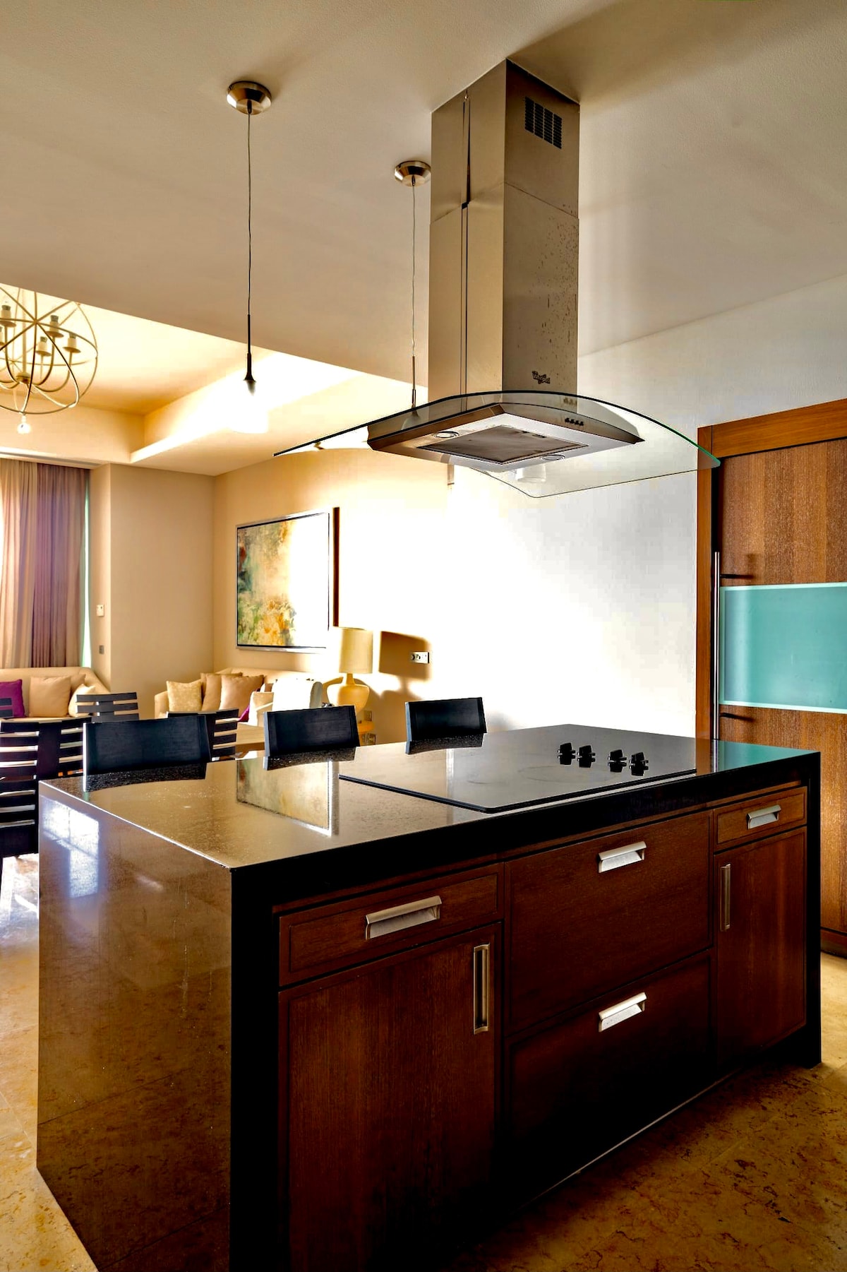Amplio y confortable y totalmente equipado departamento contemporáneo, con vista al mar a tan solo una cuadra de playa, además cuenta con una terraza completamente privada para disfrutar de una hermosa puesta de sol, equipada con palapa, jacuzzi, sala de estar, baño completo, área de preparación de alimentos y asador de acero inoxidable tipo BBQ.