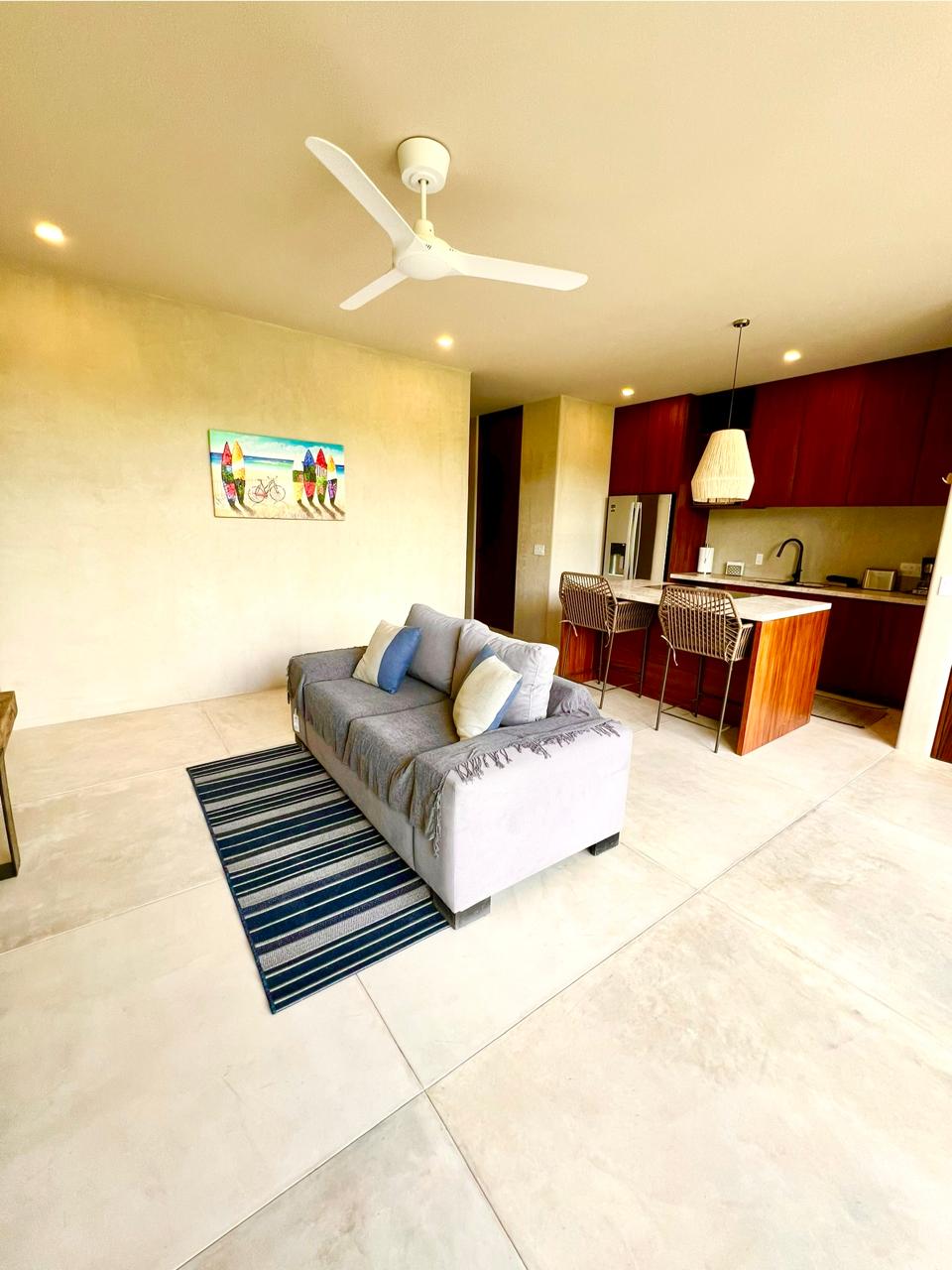 Condo Rosina is a freshly updated 1-bedroom condo on the 4th floor of 3.14 Living in Nuevo Vallarta repainted in June 2025. Enjoy mountain views and a cozy balcony with BBQ and sunrise view. Sleeps 2 with a king bed, 1 bathroom with shower, fully equipped kitchen, coffee station, high-speed internet, great new A/C, and a dedicated workspace. Spacious living area with large couch. Walk to the beach in 8 minutes or enjoy cafés, restaurants, and shops just downstairs. Peaceful and well located.