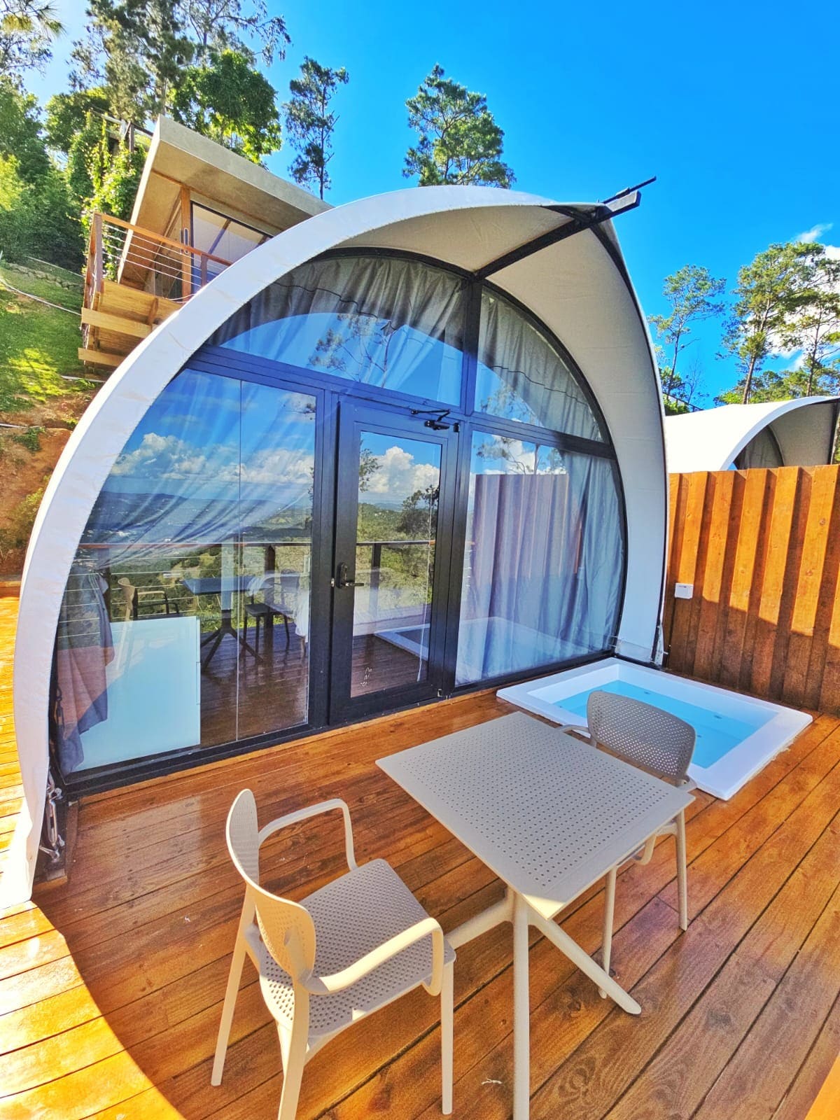 (Absolute privacy) Espectacular one bedroom Villa located 14 min from the center of jarabacoa easy access on any type of car. Uniquely and personalized built to help couples scape from the wourld to a private and peaceful Stay. Private and heated pool right at the bedroom side, 360° rotating TV, king size bed, Elegant kitchen and amazing bathroom. Free wifi power by starlink.
