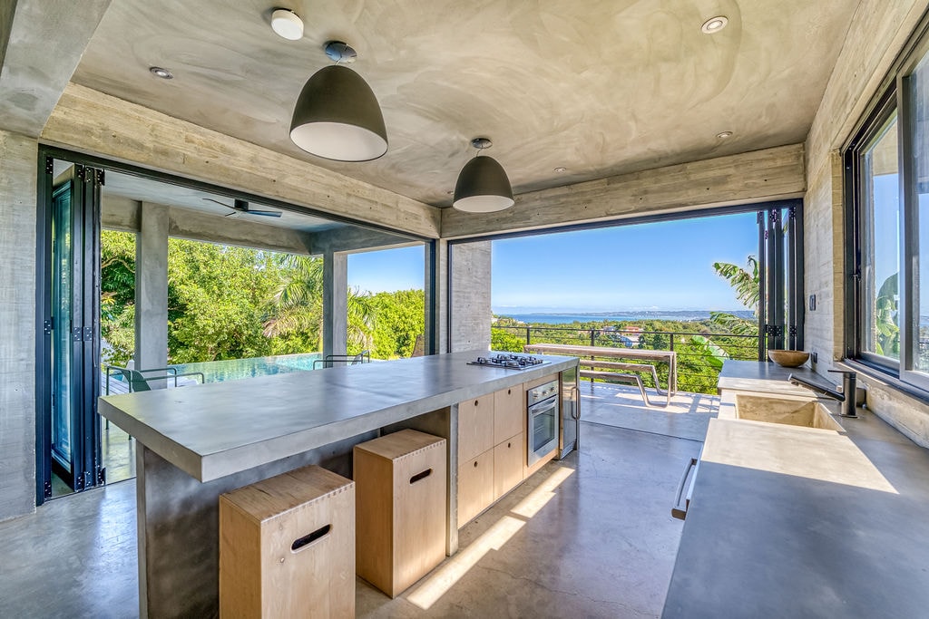One-year-old minimalist retreat that maximizes on views (inside and out), comfort, privacy, & tranquility. A fully open main floor opens to a salt-water 15 x 18 double-edge infinity pool and pool deck. Solar energy, fully filtered well water, 300 Mbps high-speed wifi, and high efficiency fixtures ensure consistent as possible comfort and connectivity within the fluctuations of island life. Each bedroom has a private balcony and en suite bathroom. Optional studio apt. ($250/night)