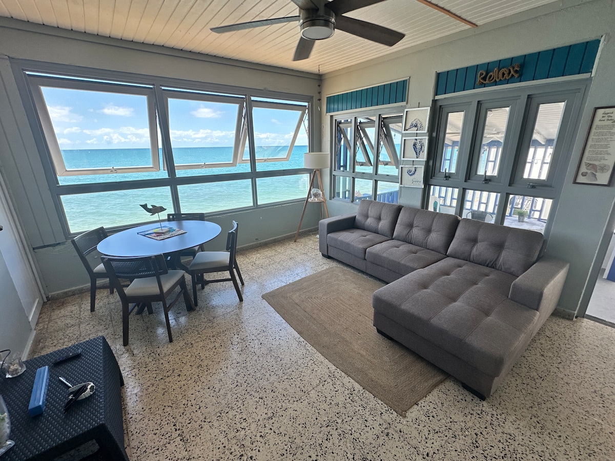 Absolutely gorgeous OCEANFRONT sanctuary! Your own private paradise less than 10 minutes from Rincon town square. Family friendly with Pack-n-Play & kids games/puzzles. Fully air-conditioned, high-speed WiFi, private entrance with exclusive courtyard, large upstairs balcony & downstairs sundeck. 50" 4K Smart TV with Netflix, Amazon, and many others. Fully equipped kitchen, outdoor stainless-steel gas grill, utensils, bedding, toiletries, beach gear...everything you need for a perfect stay!