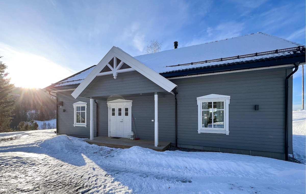 Have fun with the whole family at this stylish and Nordisk moder place with idyllic and undisturbed surroundings in harmony with nature. Panoramic view of Sperillen. 1.5 hours from Oslo/Gardermoen/Drammen. The area with rich nature, perfect for everyone. Cabin is with 2 bathrooms ans 5 bedrooms. In the living room, which has an open solution for the kitchen, there is a sofa group and a dining table with seating for 14 people. Wall hung TV,wireless internet, large terrace with Jacuzzi and sauna.