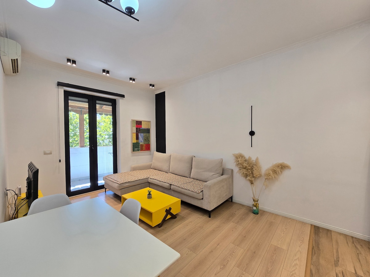 Welcome to our centrally-located apartment, your perfect home located in the heart of the city! With a balcony in front of “Parku Rinia”, surrounded by vibrant culture, 20 meters away of “House of Leaves Museum”, “National History Museum”, “The Clock Tower of Tirana”, “Myslym Shyri street" 5 meters from our stylishly furnished and well-equipped space, or “Blloku” 30 meters away with shops bars and restaurant. Experience the pulse of the city like never before at our prime location!"