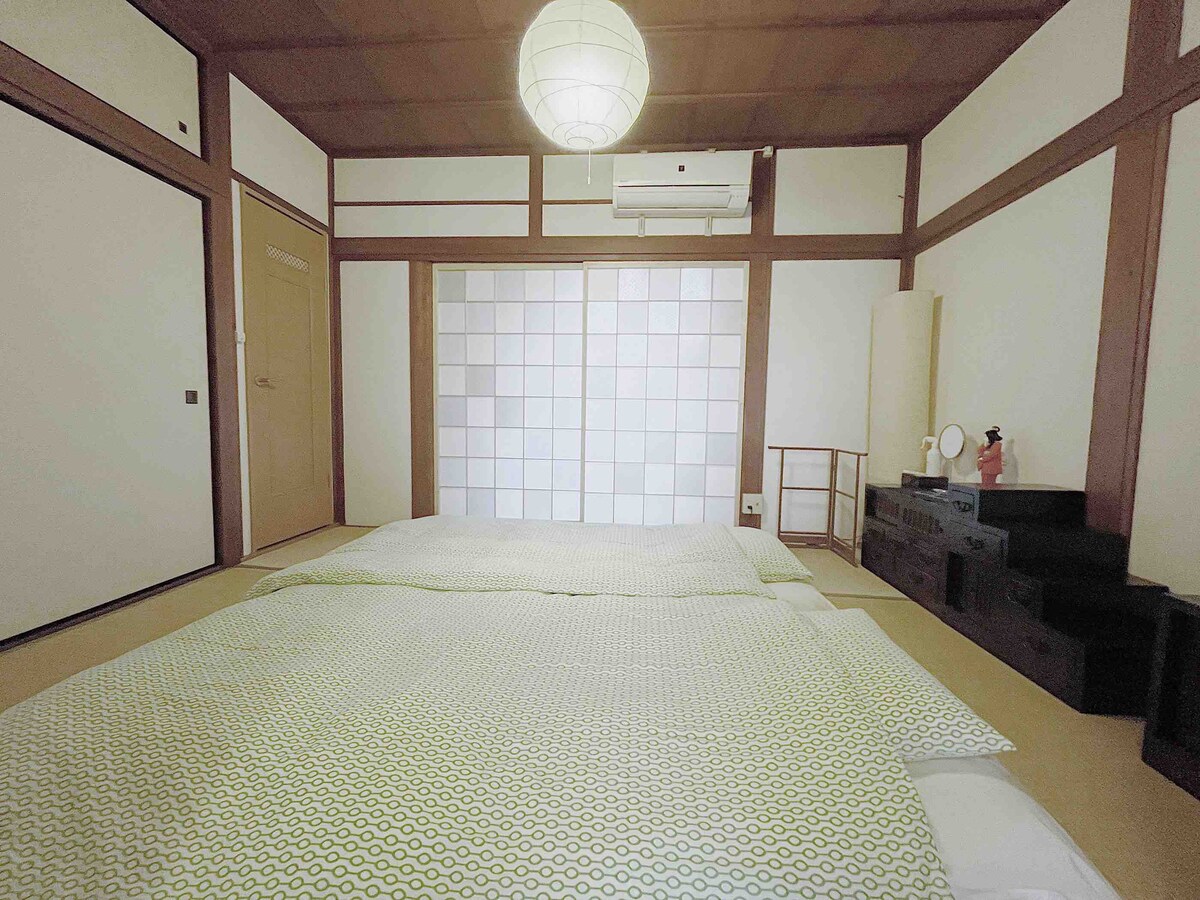 ★ 免费提供 随身高速Wi-Fi(无线上网) Free high speed portable Wi-Fi is available. ☆ 本民宿大阪地方政府认定。符合各项法律标准(消防、警报、卫生等)。 * 这个民宿至少两位起可以利用。 介绍真大独户住宅。 一大房间附属一间日本榻榻米传统式和室。 榻榻米房间 - 卧室 大居室 - 居室卧室两用 中间是麸子拉门分开。(请参考照片) 我方提供日式寝具(布団)。 一个人一套,所以随便铺着利用。 团体客人也能接受。(当然少数旅客们也可以利用) 体检榻榻密(日本传统式)房间。 到关西机场15分钟。 (利用南海线铁路) 到大阪市内难波30分钟。(利用南海线铁路) 到RINKU奥特莱斯15分钟(利用南海线铁路) ※ 房东(我)会讲流利中文。上海外国语大学毕业。在上海工作了七年。 语言沟通方面请放心。高中时新西兰留学一年,所以英文也没问题。