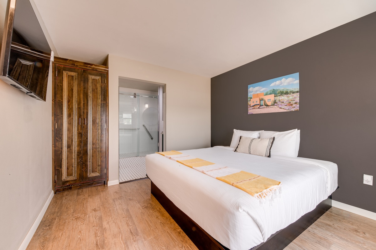 Perfectly suited for up to two guests, our Standard King offers generous space to comfortably unwind after a day of exploring Taos. Room includes a safe, keurig coffee machine and a mini fridge. it’s the ideal set-up for travelers looking to maximize their time exploring in scenic New Mexico. *TV IS CURRENTLY UNAVAILABLE*