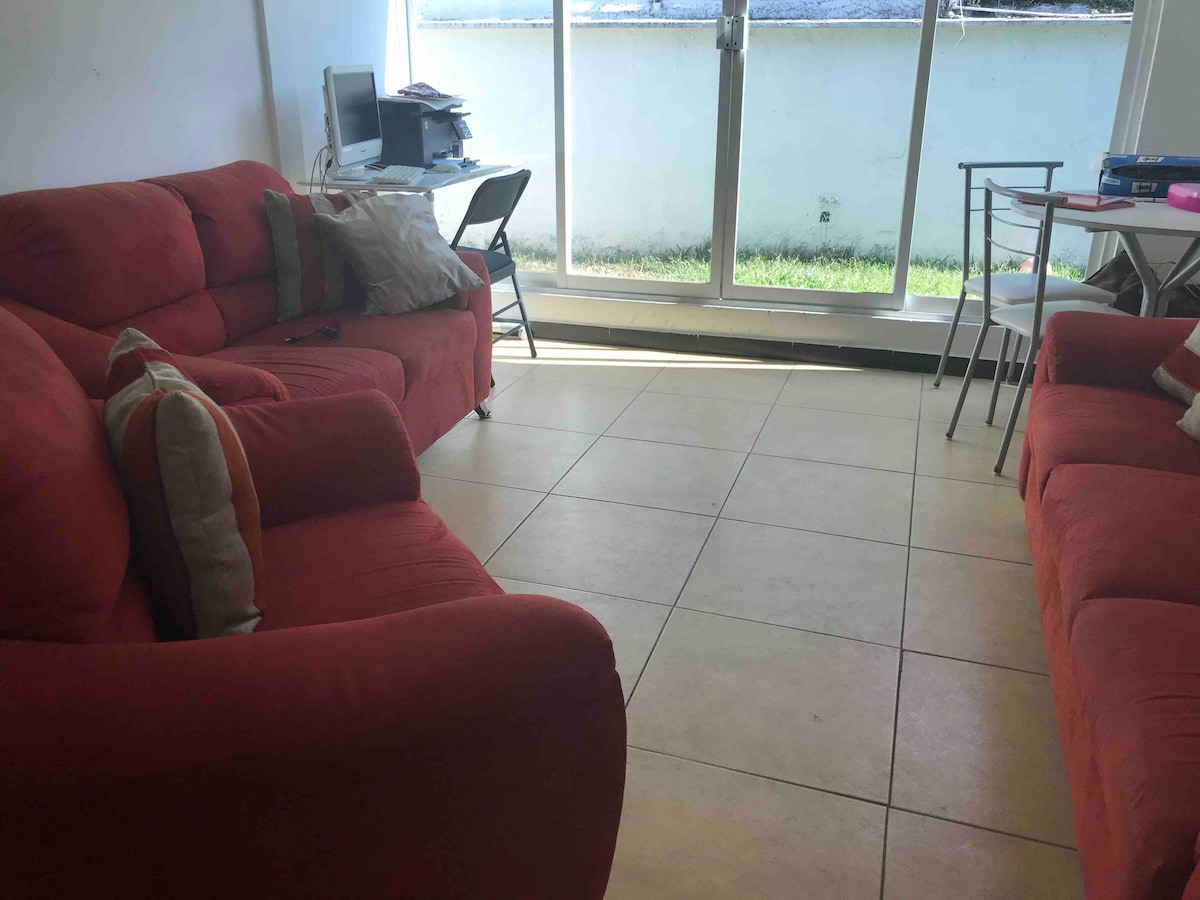 Alojate en este espacio en el que puedes realizar diferentes actividades, ya sea vacaciones familiares o Home Office. Se encuentra ubicado a pocos metros de la Avenida Principal y de una de las principales Plazas comerciales, con fácil acceso a las diferentes atracciones turísticas de Orizaba. Es un lugar iluminado, espacioso, y tranquilo. Cuentas con internet, Smart TV, aire acondicionado en ambas habitaciones y centro de Lavado. Cuenta con dos baños completos y agua caliente.