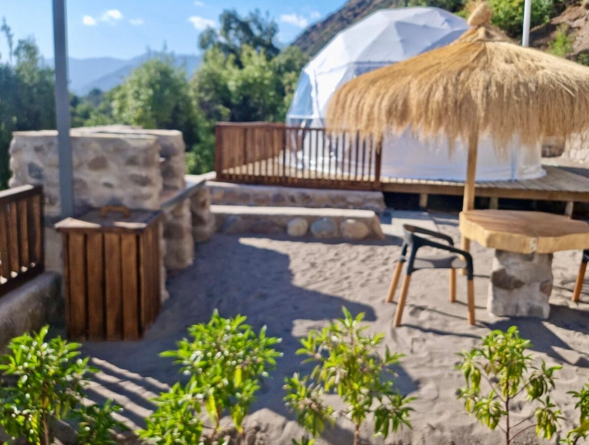 Domo muy cómodo para venir a desconectarse y relajarse (No se permite el uso de parlantes). Domo con aire acondicionado, salamandra, frigobar, baño completo c/agua caliente, Relájate en las noches estrelladas en un HOT TUB ( agua a 37°-39°) o refréscate en nuestra piscina, en glamping_domo_chile podrás caminar por los hermosos senderos de la zona. Recepción tabla de picoteo, desayunos en las mañanas . Todo incluido en el precio. Servicio de almuerzo a la carta.
