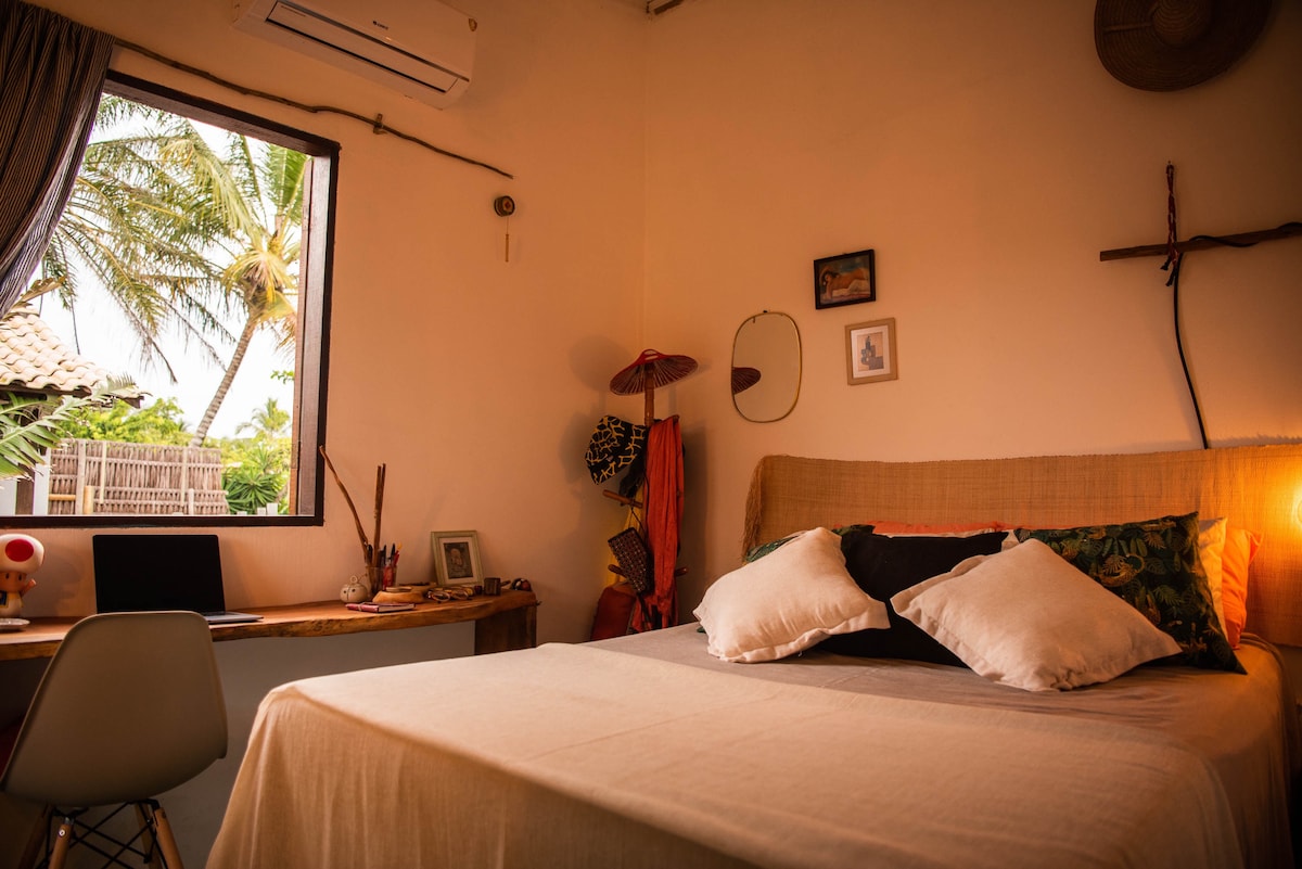 Descubra o Hayô Bangalôs, onde conforto, privacidade e tranquilidade se unem em uma hospedagem de luxo. Localizado a apenas 5-7 minutos de caminhada de uma das praias mais lindas do sul da Bahia, é o refúgio ideal para relaxar ou trabalhar em meio à natureza. - Ideal para trabalhar, Wi-fi de qualidade. -Gerador próprio em caso de queda de energia. - Camas king size com colchões confortáveis. - Sistema próprio de filtragem da água tornando-a transparente e sem cheiro em toda casa.