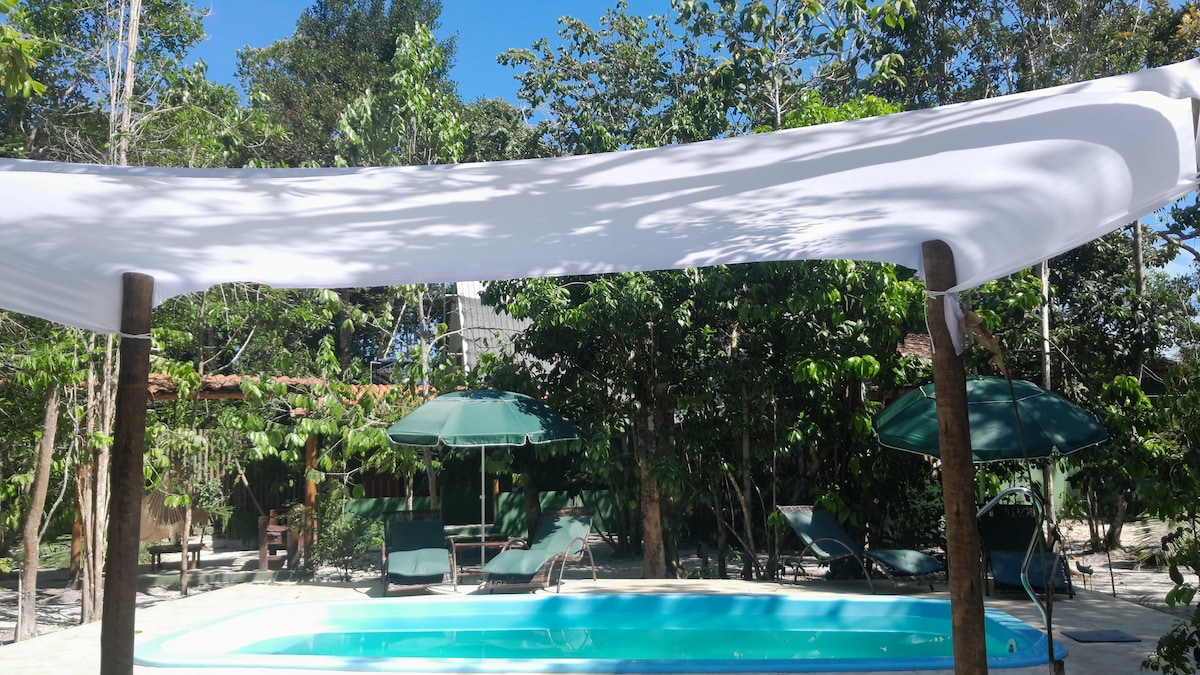 Ô Canto Caraíva provides an exclusive experience of staying in a comfortable house and enjoying a super flowery and pleasant space. Our outdoor area has a barbecue, swimming pool and a pergola to relax by the pool. At Ô Canto we have 2 independent houses with a common outdoor area (garden, barbecue and swimming pool).