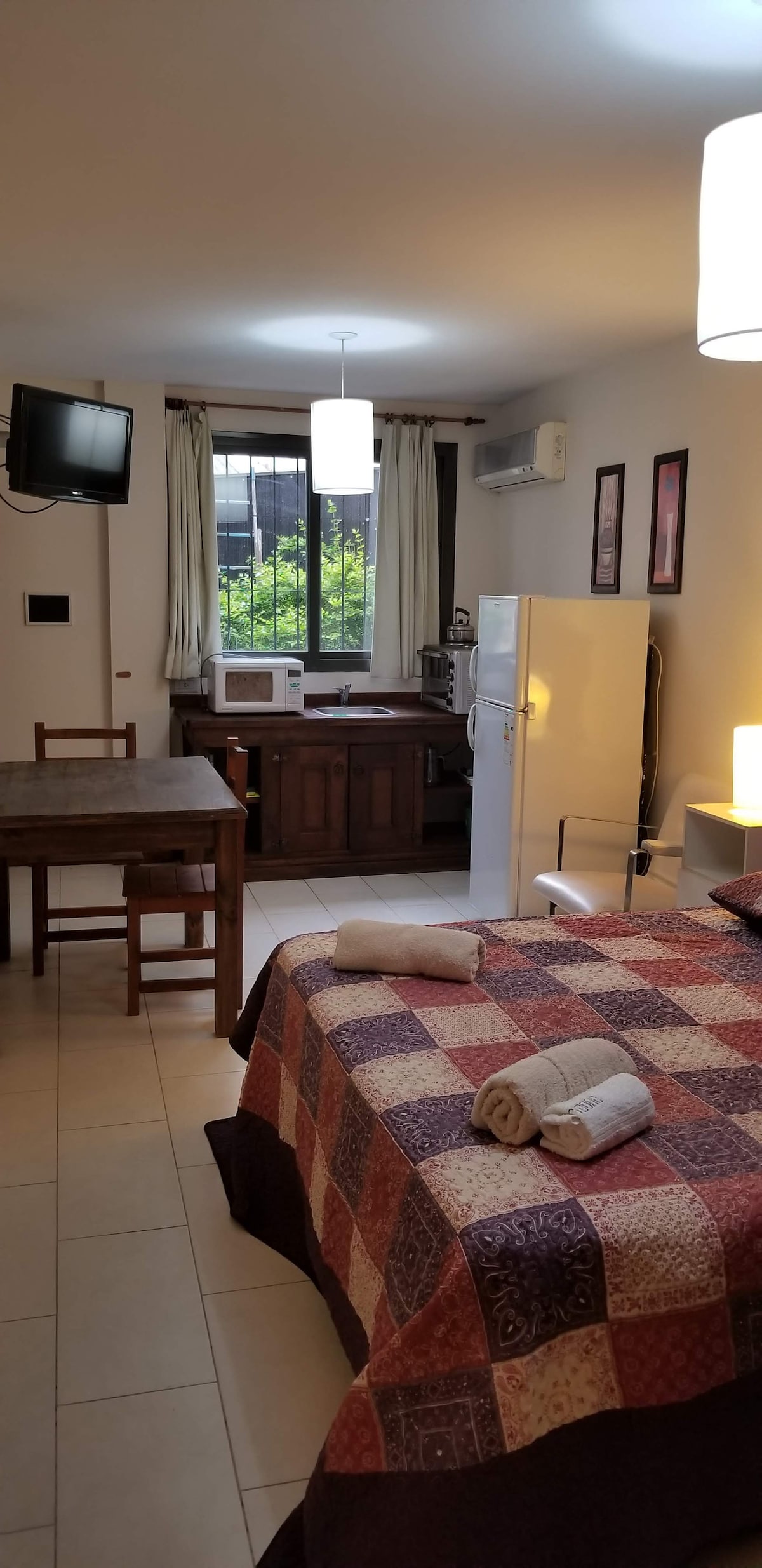 Impecable Monoambiente para dos personas ubicado a 10 cuadras de la Plaza Central. En la misma cuadra del depto. podes encontrar todos los servicio. Es una zona segura en donde se puede estacionar gratis en la calle. El depto. es cómodo y completo, cuenta con ropa blanca, wifi y Led SMART.- El edificio cuenta con cámaras de seguridad y ascensor. El Depto no tiene Aire Acondicionado.