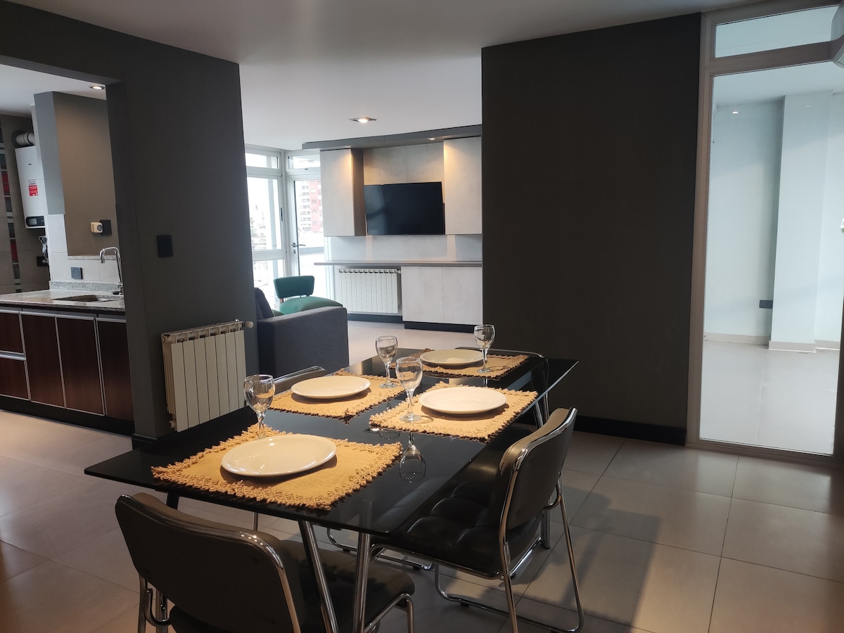 Moderno depto a estrenar a 7 cuadras de Plaza Roca. 1 dormitorio con cama queen size y sábanas de algodón egipcio 300 hilos. Baño con antebaño, bidet e inodoro. Living comedor con sofá cama (sommier individual) ideal para una tercera persona y Smart TV con cable. WiFi 300 megas. Cocina individual, heladera con freezer, microondas, anafe, vajilla completa y plancha. Aire frío/calor en el living y habitación. Piscina. SUM con reserva y sujeto a disponbilidad. Servicio de limpieza opcional.