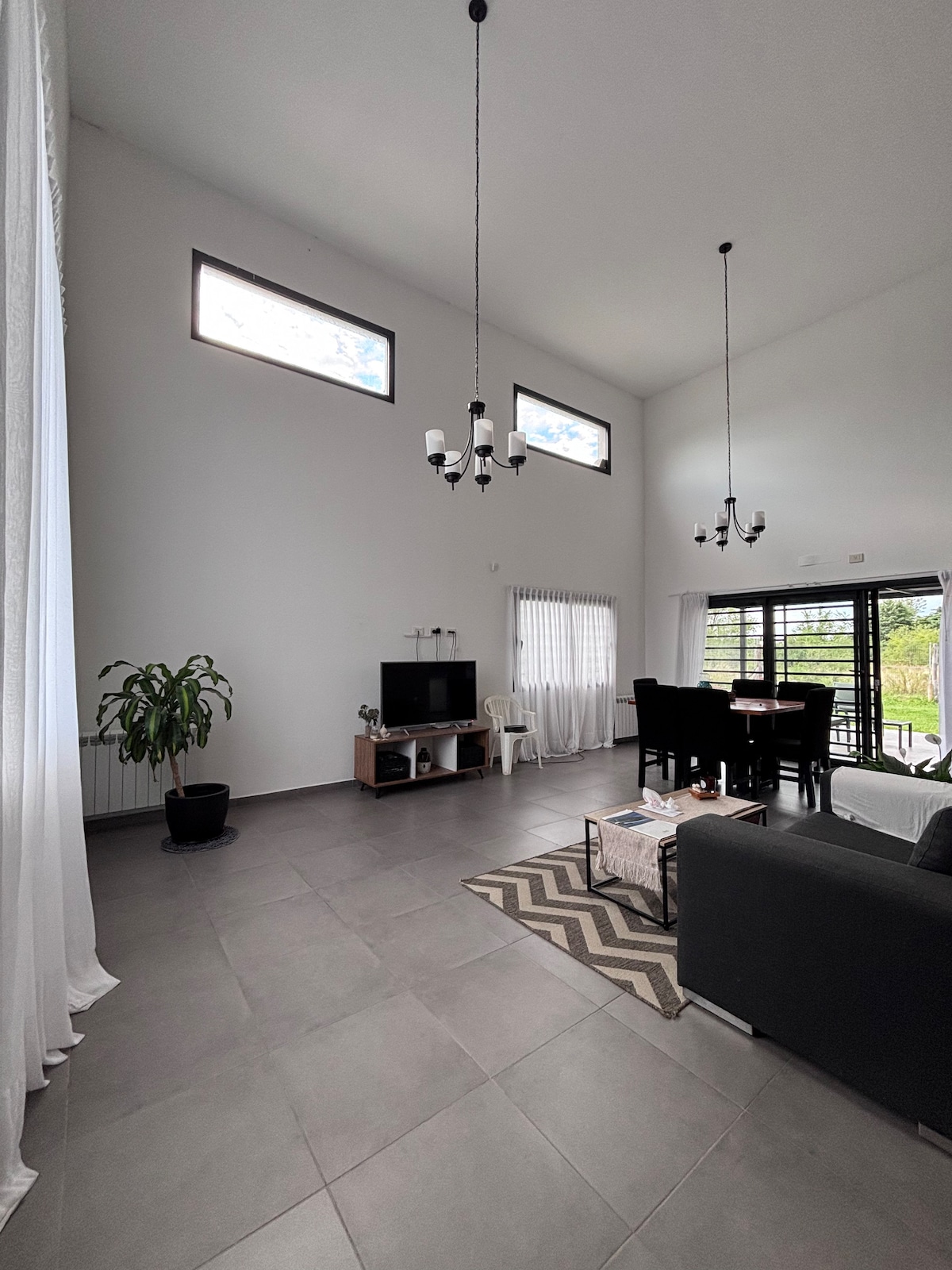 Relajate con toda la familia en este tranquilo alojamiento. Es una casa nueva y luminosa con dos sommiers de 1 plaza y media y un sofa cama de 1 plaza para 2 personas. Cuenta con wifi, cable, alarma, camaras, ropa blanca (sin toallon). Perimetro totalmente cerrado con porton corredizo. Calefactores.