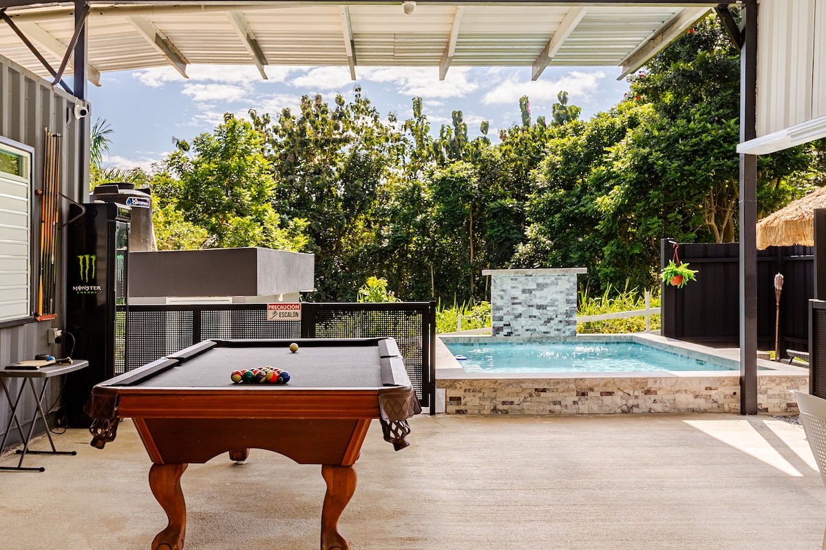 Casa el Yunque offers a serene retreat nestled within the breathtaking landscapes of El Yunque National Rainforest. With two cozy rooms and AC, one bathroom with hot water, and a refreshing pool 5 feet deep, The house has solar panels and a water tank. Enjoy nature's tranquility with a nearby private river, perfect for relaxation or adventure. The deck offers a beautiful spot for and outdoor dining. Experience the ultimate getaway at Casa el Yunque, where nature meets luxury.