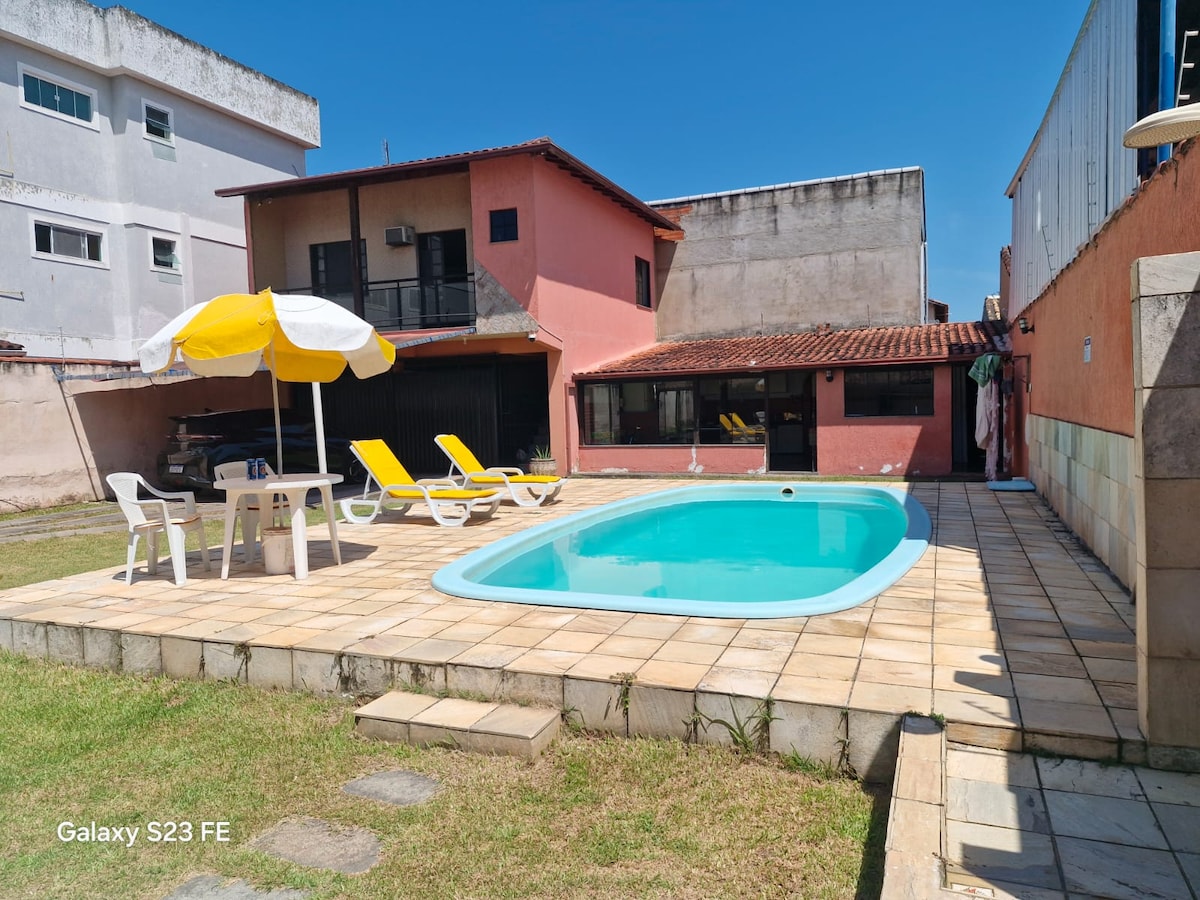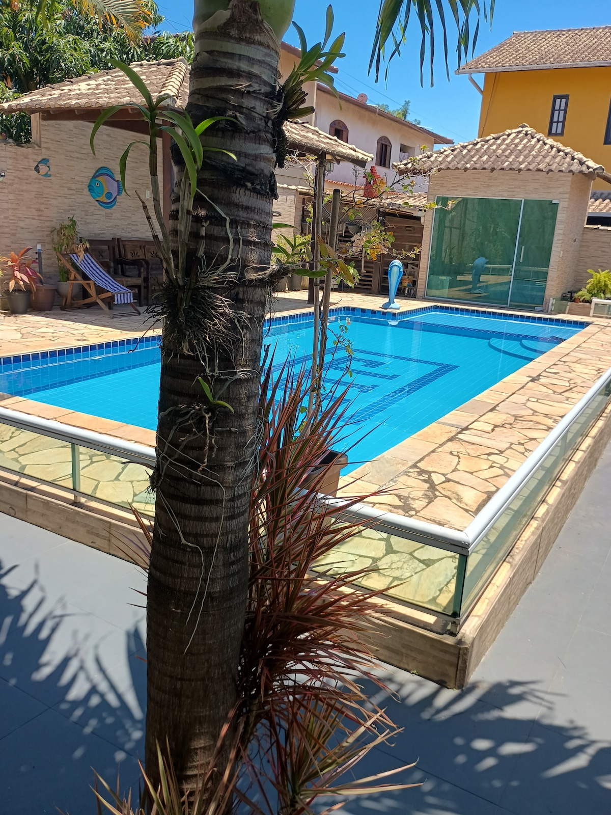Acomodação Aconchegante em Rio das Ostras Não aceitamos pets. Localização Privilegiada, ao lado da feirinha e da praia do centro e praia do Bosque, 4km de Costazul 3 suítes com ar condicionado Comodidades: Área gourmet com churrasqueira, salão de jogos (sinuca), cantinho para yoga e crossfit, cozinha completa, banheiros masc e fem externos, 2 chuveirões externos, máquina de lavar roupa e louça Vaga descoberta para 2 carros Acomodação fica nos fundos da casa da anfitriã, mas o espaço é privativo