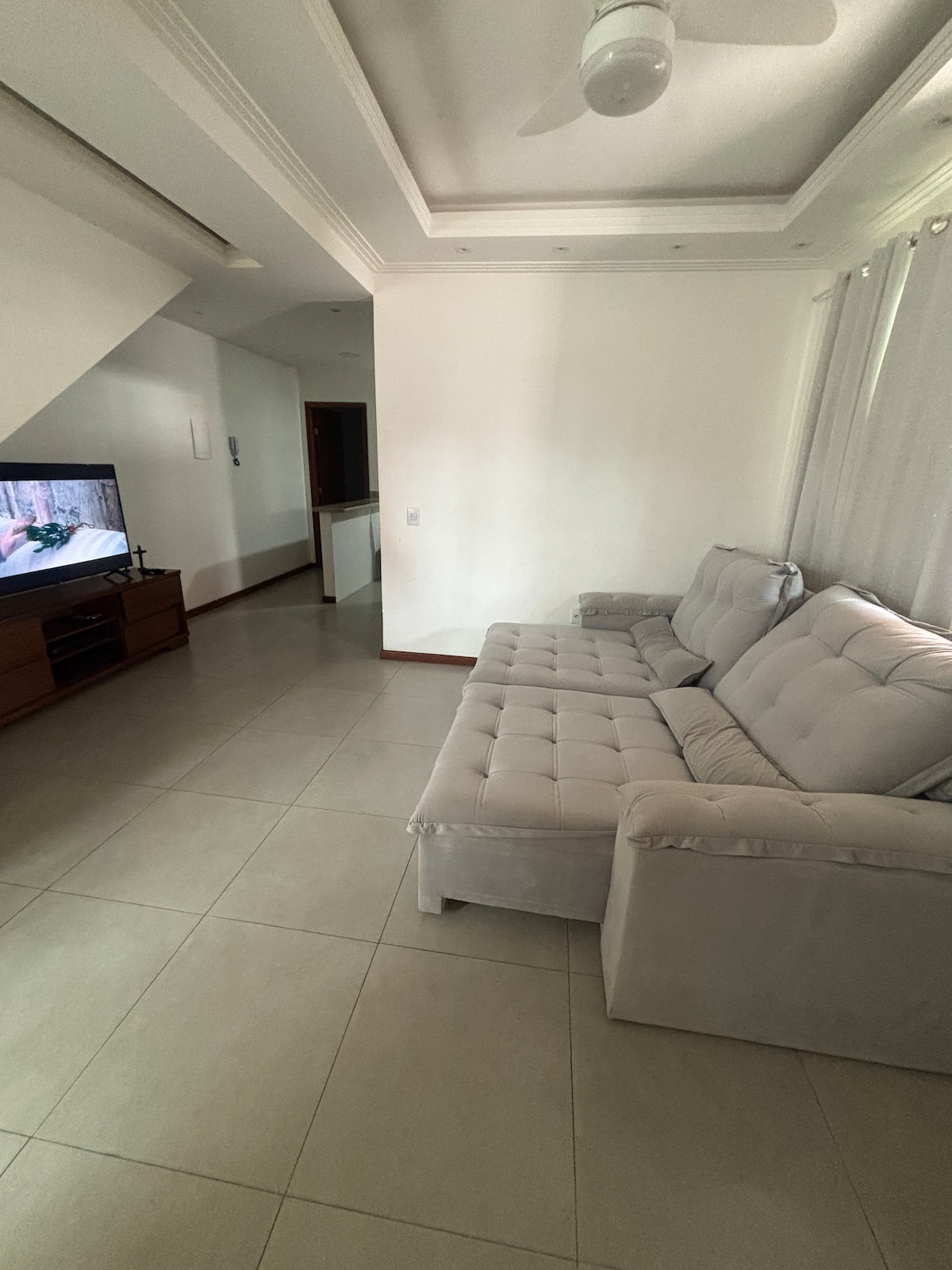 Duplex a 3 min(carro) da Praia Costazul e da Lagoa do Iriry ou á 14 minutos a pé. 1º andar: Sala espaçosa com ventilador de teto, dois sofás, uma mesa 4 lugares, Tv com IPTV e Internet, Lavabo, Cozinha completa, Área da lavanderia com um tanque e materiais de limpeza. 2º andar: Um quarto com varanda e suíte, ventilador de teto e de chão, cama queen e guarda roupa, colchão inflável, e, o outro quarto com suíte, ventilador de teto e de chão, cama queen, guarda roupa, ferro de passar. Garagem.