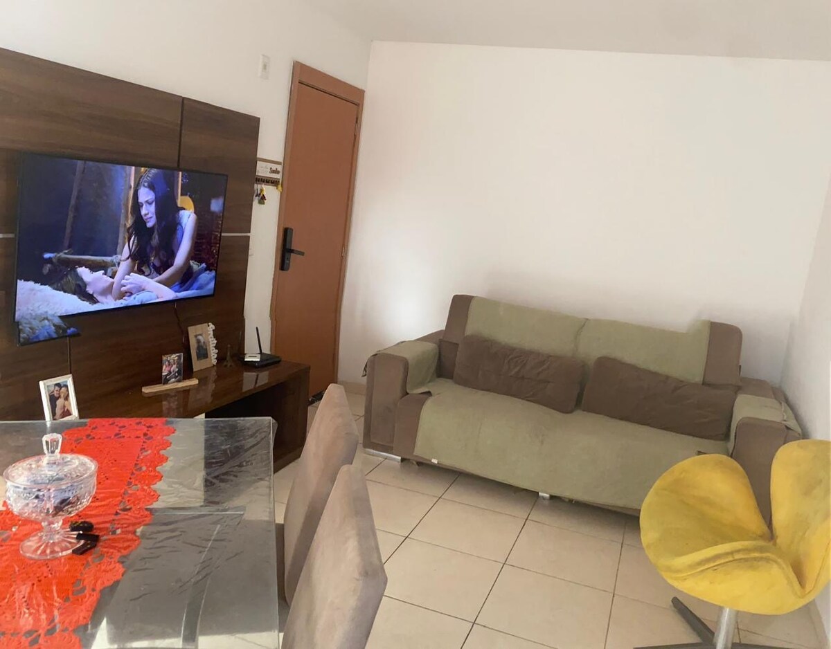 Desfrute de uma estadia confortável e completa neste apartamento de 2 quartos, ideal para famílias, casais ou grupos de amigos. O imóvel conta com sala aconchegante, cozinha planejada e equipada, além de banheiro moderno, oferecendo praticidade e bem-estar durante toda a sua estadia. Localizado em um condomínio seguro e organizado, os hóspedes têm acesso a excelentes áreas de lazer, como piscina, playground e brinquedoteca, garantindo diversão para adultos e crianças. Ar condicionado em 1 quart