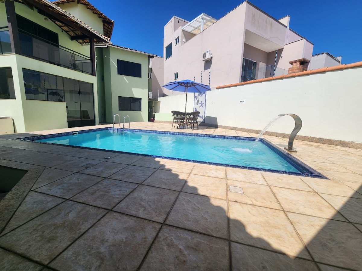 Desfrute de uma casa incrível de 3 andares. São 6 quartos espaçosos (2 suítes e 5 c/ ar ), banheiro social e lavabo ,garantindo conforto e privacidade. A área externa possui piscina e um espaço de churrasqueira,banheiro,geladeirao e um fogão industrial. Estamos a apenas 100 metros da Lagoa do Iriry, 150 metros da praia e a 500 metros da famosa Praia de Costa Azul, proporcionando fácil acesso à natureza e às belezas da região. Sinucao e mesa de cartas/jogos no 3° piso. Água purificada!