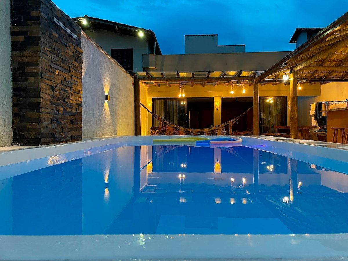 Área de lazer exclusiva do hóspede e seu(s) acompanhante(s) Ideal para casais, familiares ou amigos que buscam descontração e repouso em um amplo espaço com piscina privativa, cozinha completa em quiosque com ampla área recreativa, a menos de 1 Km das Praias do Bosque, Tartaruga e Centro, podendo ir a pé ou de bike. Aqui vc encontra rede para descanso, caixa de som para conectar sua play list e um fliperama retrô com mais de 1000 jogos de PS1, Arcade, Neo-Geo, Atari, dentre outros, legal né?