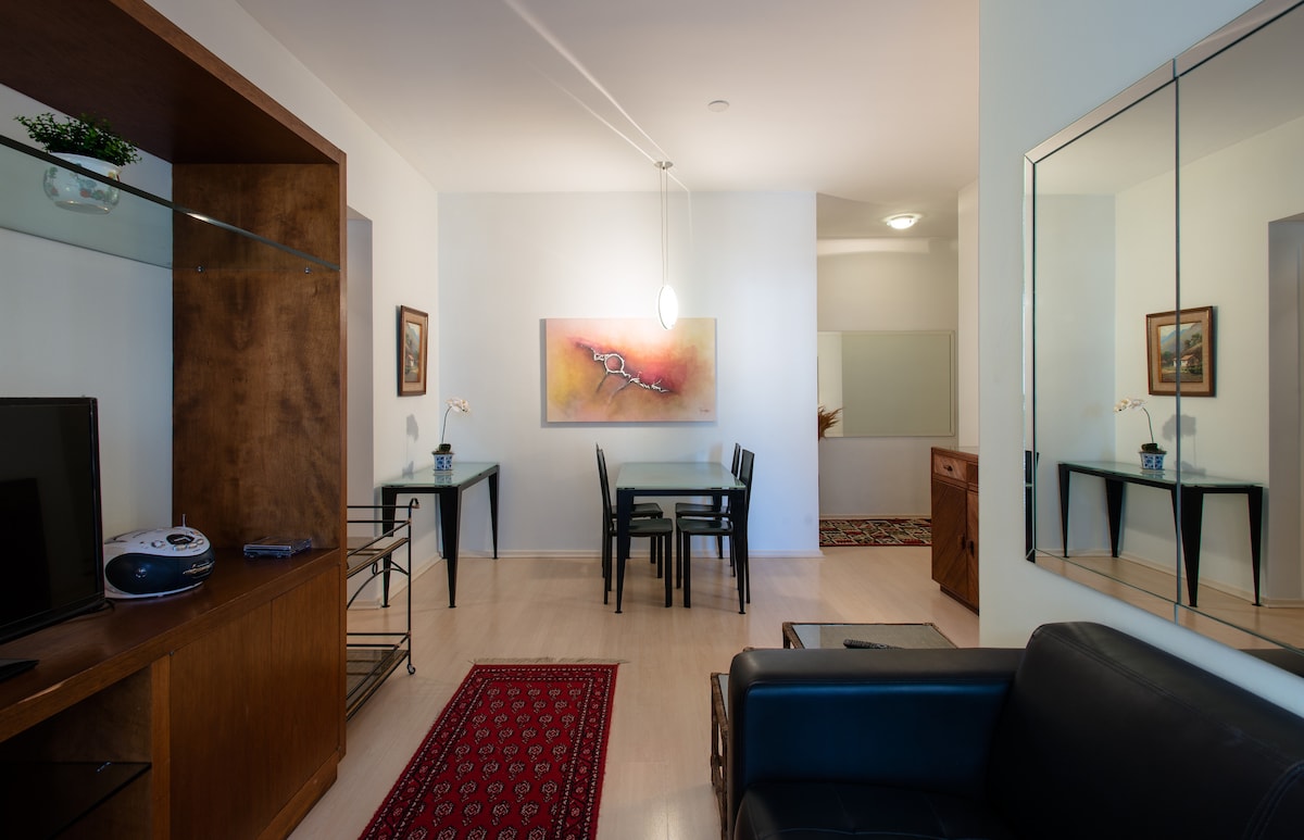 Enjoy a stunning and unique view of both the ocean and the mountain in a centrally located 2 bedroom renovated apartment in Leme, Copacabana ideal for families and couples. The apartment is cozy and has everything you need to make you feel at home. A very spacious and stylishly decorated living room, and a fully equipped apartment. One bedroom has a queen bed, the second bedroom has 2 single beds, and there are 2 more mattress/futons that can be placed in the living room if needed.