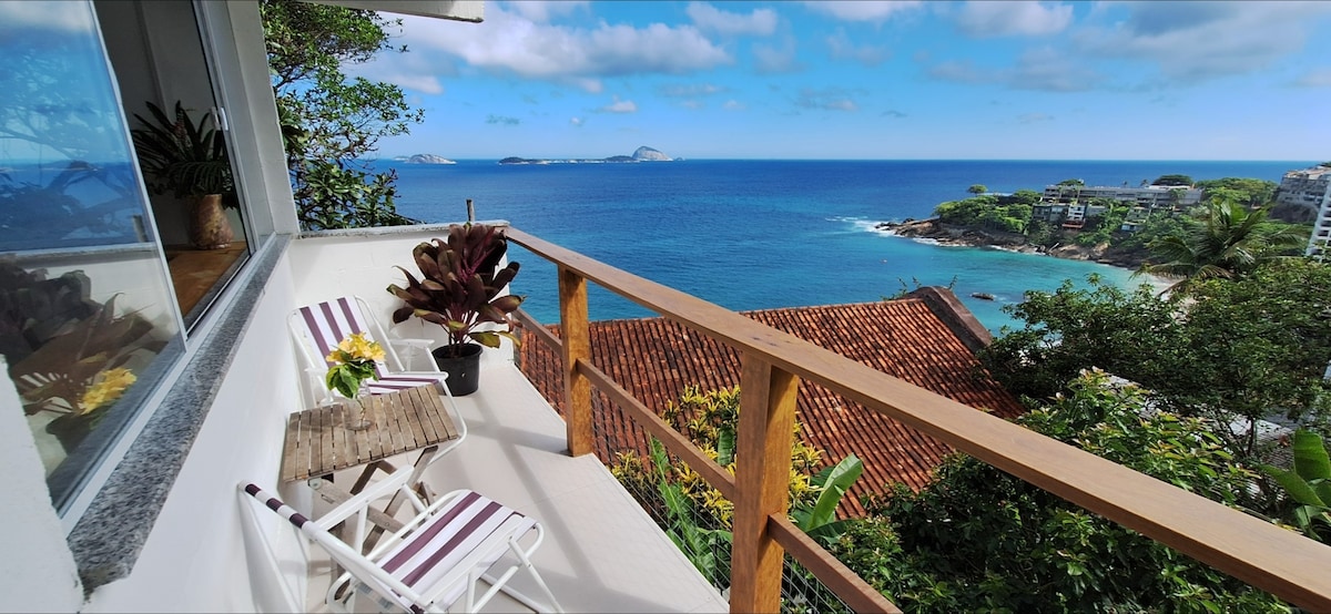 Welcome to the community of Vigidal, Rio's chic and vibrant favela! Perched on the edge of the forest, this apartment offers breathtaking views of the Atlantic Ocean and the Ilhas Cagarras archipelago. When you wake up, admire the sunrise and the passage of migratory birds. By day, let yourself be enchanted by the song of the birds; by night, by the gentle surf of the waves. Here, nature reigns supreme: curious monkeys and lush vegetation punctuate your stay in a peaceful and inspiring haven.