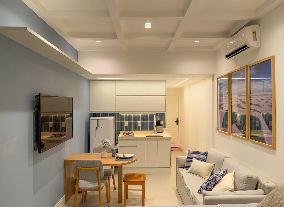 Newly renovated (January 2026), queen-size bed, split air conditioning, and in the best part of Copacabana. This studio has a fascinating view of Copacabana beach at your feet. Restaurants, markets, pharmacies, banks, and bars are just a few meters away. Everything you need to enjoy all the pleasures of the Marvelous City with the greatest comfort. The building has total security and 24-hour concierge service, two social elevators and one service elevator. The building does not have a garage.
