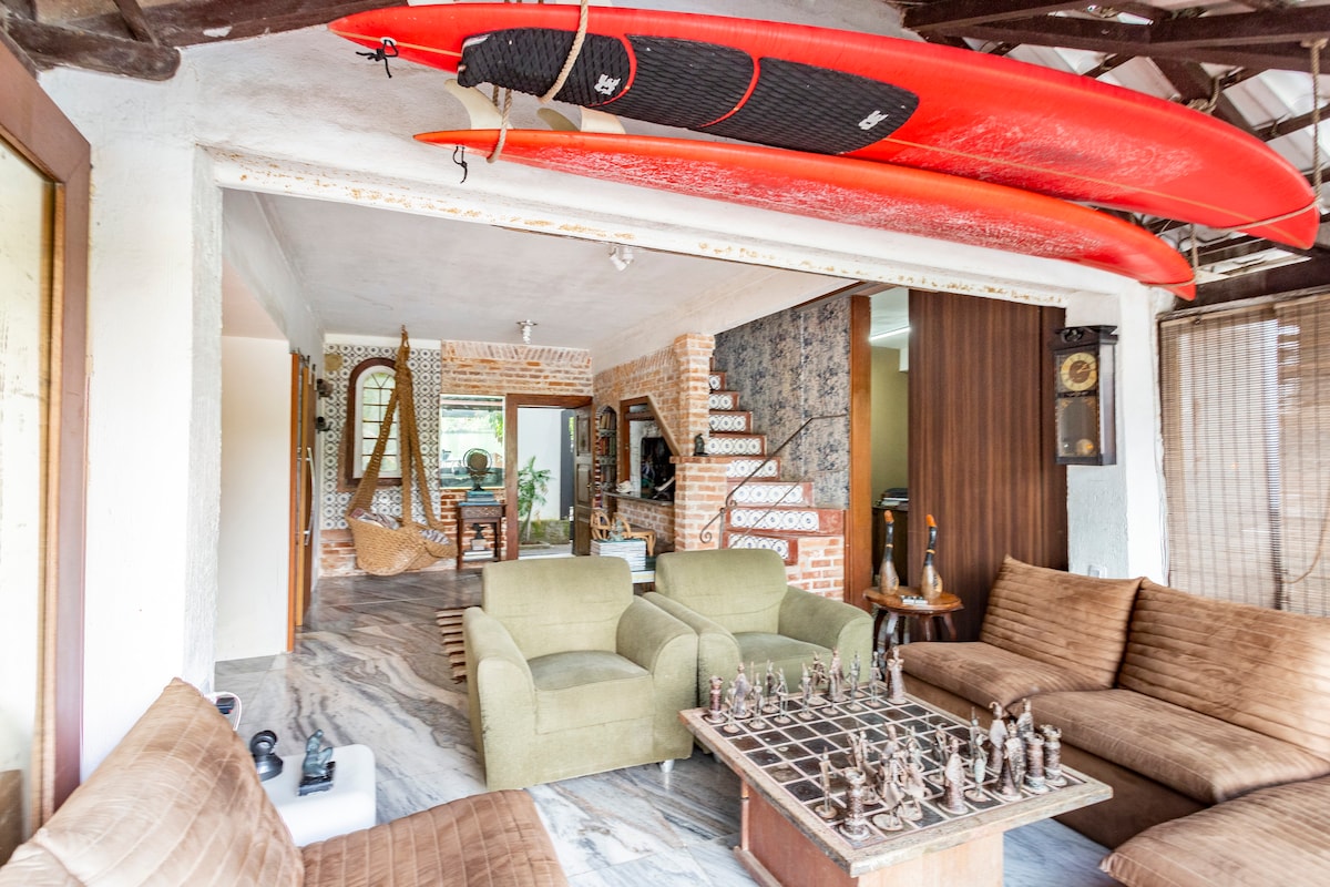 Gold is a cozy, colorful, bright apartment in a historic building completely renovated to fulfill the dream of living in Santa Teresa, the oldest neighborhood in Rio De Janeiro, a few steps from the city center. The property is surrounded by a private garden and is located in Rua Pinto Martins 35, a very quiet pedestrian street with private access, closed at night and overlooking the "Escadaria Selaron" staircase Search us on our social networks!