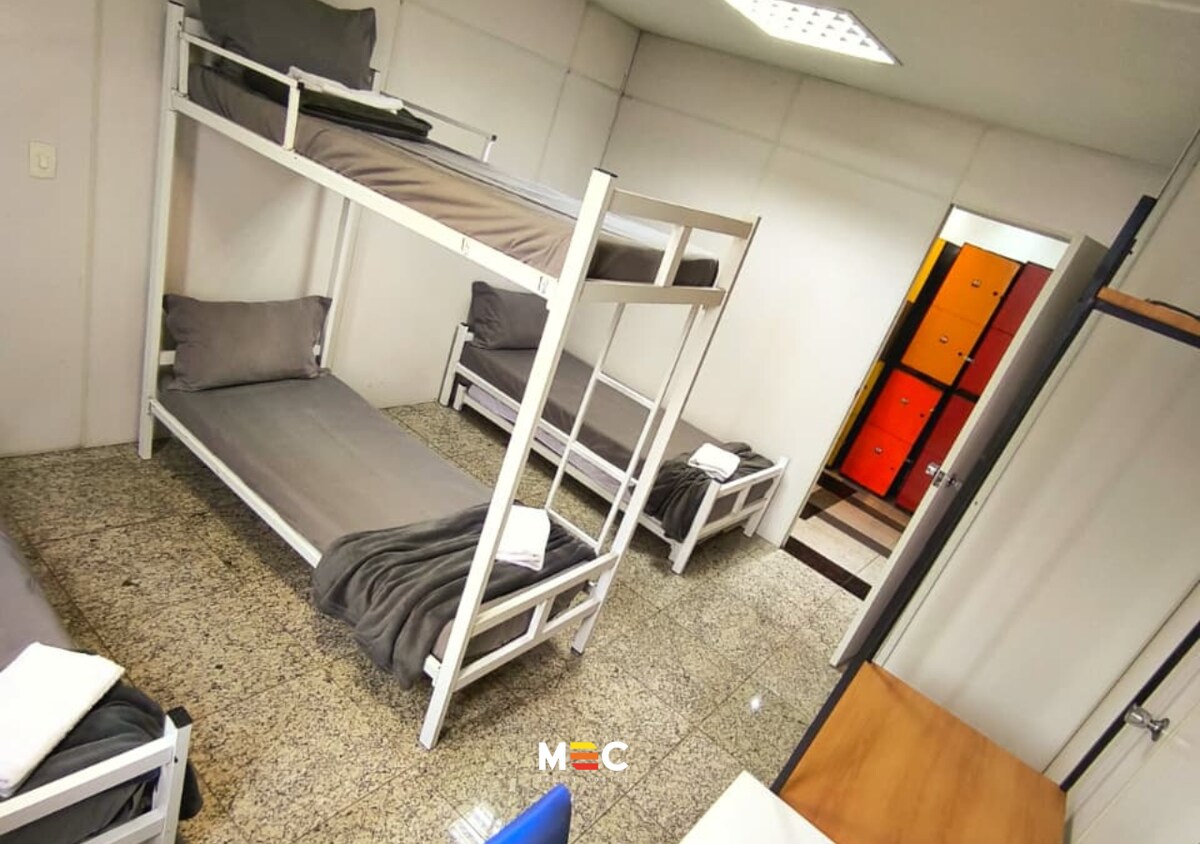 Cama em quarto compartilhado misto para 15 pessoas. O quarto conta com fechadura eletrônica, armário individual, ventilador e ar condicionado (De 22h às 08h). O banheiro é privativo, dentro do quarto. Está incluída a roupa de cama e internet wi-fi. Também está disponível uma cozinha compartilhada para uso dos hóspedes. Diária acrescida de 3% em taxa de serviço , a ser paga no momento do checkin.