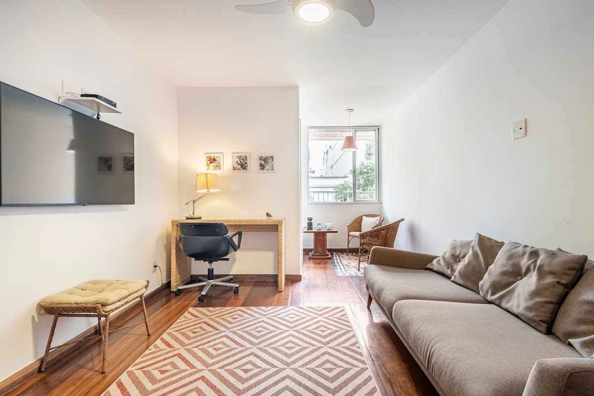 This brand new cozy and charming flat is waiting for you on Ipanema Beach corner, first quartier of the beach, close to N.S. Paz underground and major bus lines. Although you can walk around by foot and easily reach the best restaurants, supermarkets and shops of Rio, besides the beach and the Lagoon.