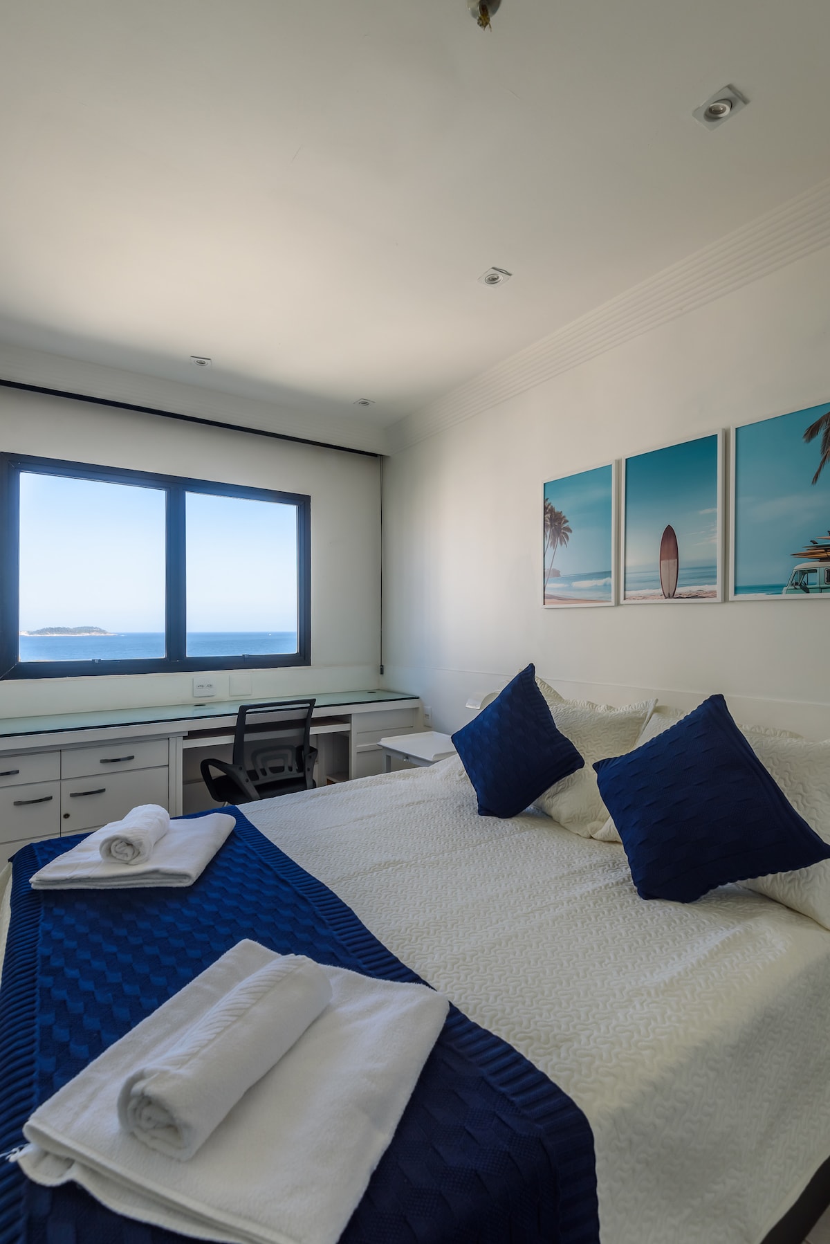 Modern & Safe Apartment in the Heart of Ipanema! Enjoy breathtaking ocean views from the balcony and bedroom in this stylish flat, up to 2 guests. Features a comfortable queen bed, sofa bed, 2 split air conditioners, smart TV, high-speed Wi-Fi, Nespresso machine, hair dryer, and a fully equipped kitchen. Located steps from Ipanema Beach, this secure and modern building offers swimming pool, sauna, gym, parking and 24h doorman service, ensuring comfort and peace of mind throughout your stay.