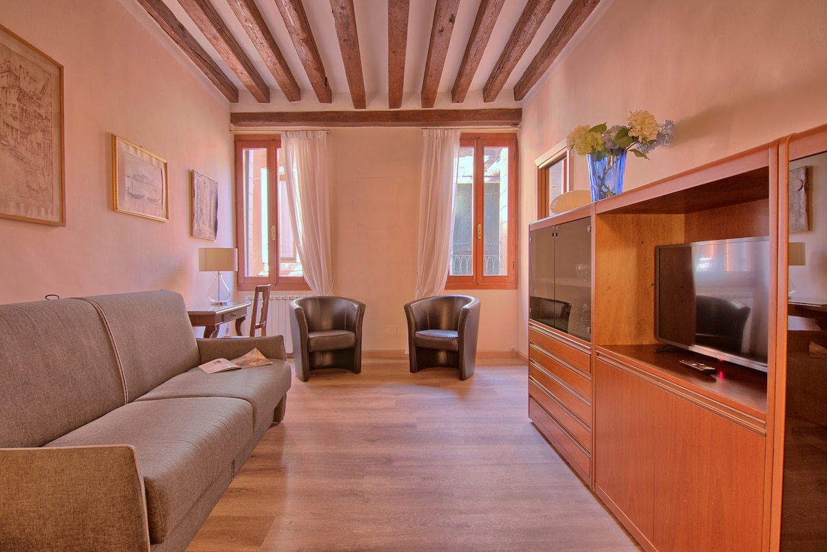 Cozy up with a book, have breakfast and dinner while admiring the incredible view of the bell towers and canals of Venice, live like a true Venetian in the most typical district of Venice a few steps from the Rialto bridge, Ca' D'oro and San Marco in a apartment finished with furniture and ornaments made by Venetian and Murano artisans. You will feel like you are experiencing the fantastic atmosphere of the 1800s but with all the comforts of a modern apartment. Don't miss this amazing experience
