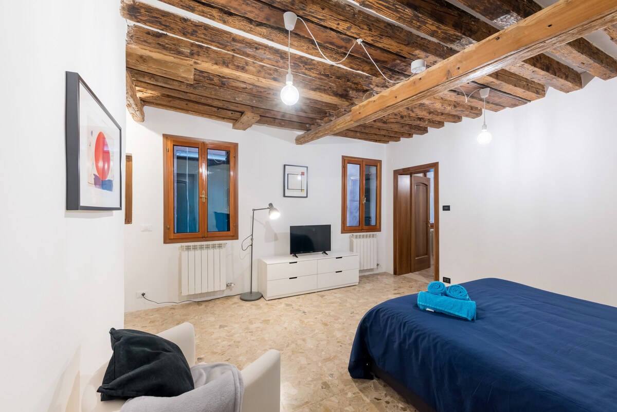 The bright flat is a perfect combination of modern style and tradition: while all the pieces of furniture are brand new, the white mosaic floor, the ceiling with beams and decorative details reflect the typical Venetian interiors. The flat is provided with the following services: - fully equipped kitchen with induction cooking and combo oven; - air conditioning both in the dining room/kitchen and bedroom; - clean towels and bed sheets; - high speed WiFi (and ethernet connection); - Cinema TV with Sky decoder (with subscription to international channels), music sound system. Rialto Bridge is only seven minutes away, or venture a little further to Piazza San Marco in about 15 minutes. Getting lost in the picturesque alleyways is part of the beauty of exploring Venice. Please respect the beauty! As you see, all has been designed and taylored made to perfectly fit this slice of heaven. We put our lots of time and all our passion to create this little oasis: please behave as if you were in your own place. Please note that, once your stay will be confirmed, I will need a photo of your ID. Thanks in advance for your cooperation.
