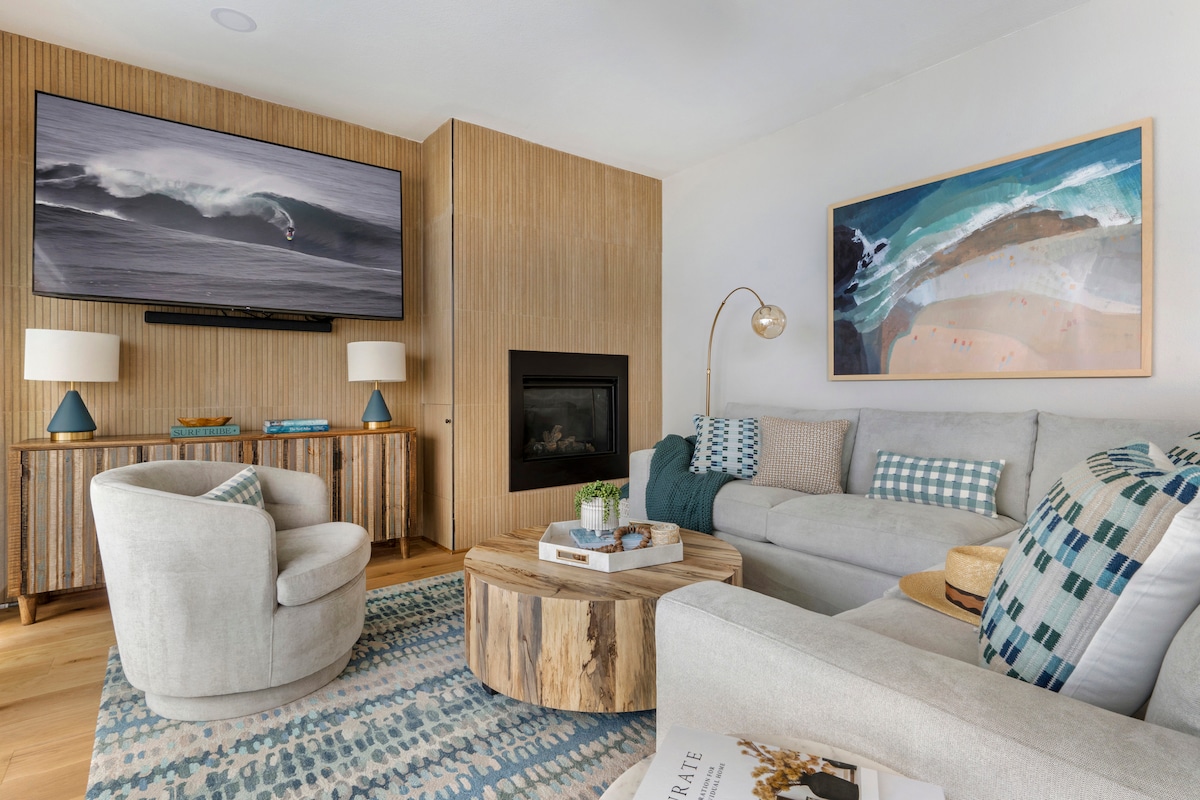 Sea breezes and unobstructed 180-degree ocean views greet you from the private deck of RdM Lookout, a brand-new beach property with a bright open, mid-century modern beach design complete with a cozy fireplace hardwood floors, and quartz counters. A comfortable, chic space, guests tell us they love the amazing beds, soft linens, fluffy towels, and our gourmet kitchen with a stocked coffee bar with to-go cups for long beach walks. Come home to a relaxing, beach vacation in a charming beach town.