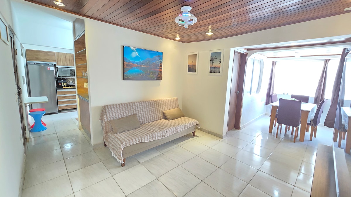 🏡 **Apartamento Aconchegante de 80m² em Natal!** 🏡 Desfrute de uma sala com TV de 55”, ar condicionado de 18 mil BTUs e internet 500 Mbps. 🍽️ **Cozinha Gourmet:** Ilha com exaustor e armário embutido, churrasqueira, geladeira, micro-ondas, purificador de água, cooktop por indução, máquina de lavar e secadora de teto. 🚿 **Banheiros:** Dois chuveiros elétricos e um lavabo. 🛏️ **Quartos:** Social com ventilador de teto e principal com cama box e ar condicionado inverter de 12 mil BTUs.