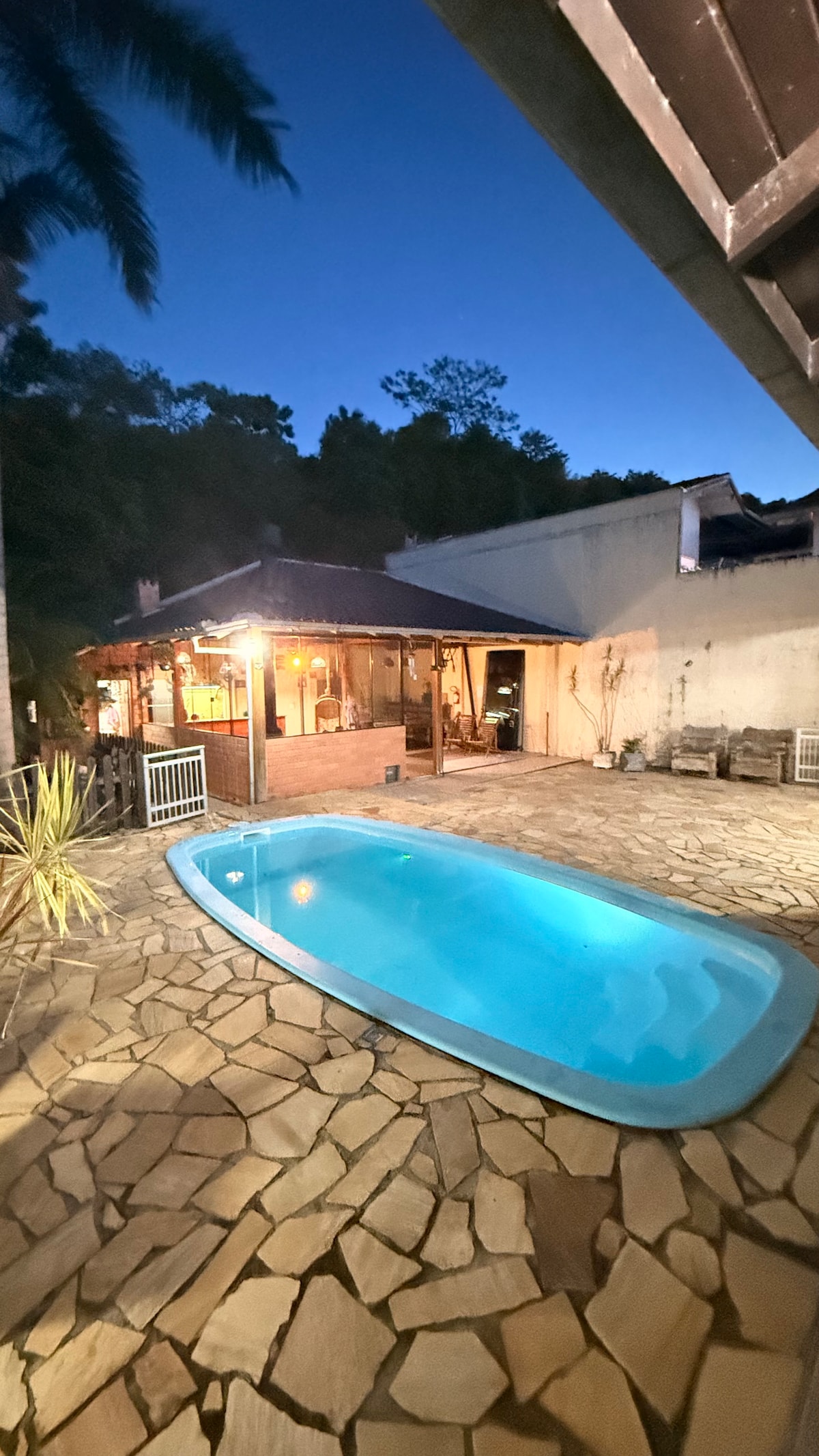 Desfrute de dias relaxantes em meio à natureza exuberante de Agronômica! Oferecemos: Casa aconchegante com Wi-Fi; Espaço verde amplo com churrasqueira; Forno a lenha para deliciosas pizzas e assados; Localização tranquila, ideal para descanso; Perfeito para acomodar equipes de trabalho. Esqueça de suas preocupações neste lugar espaçoso e tranquilo.