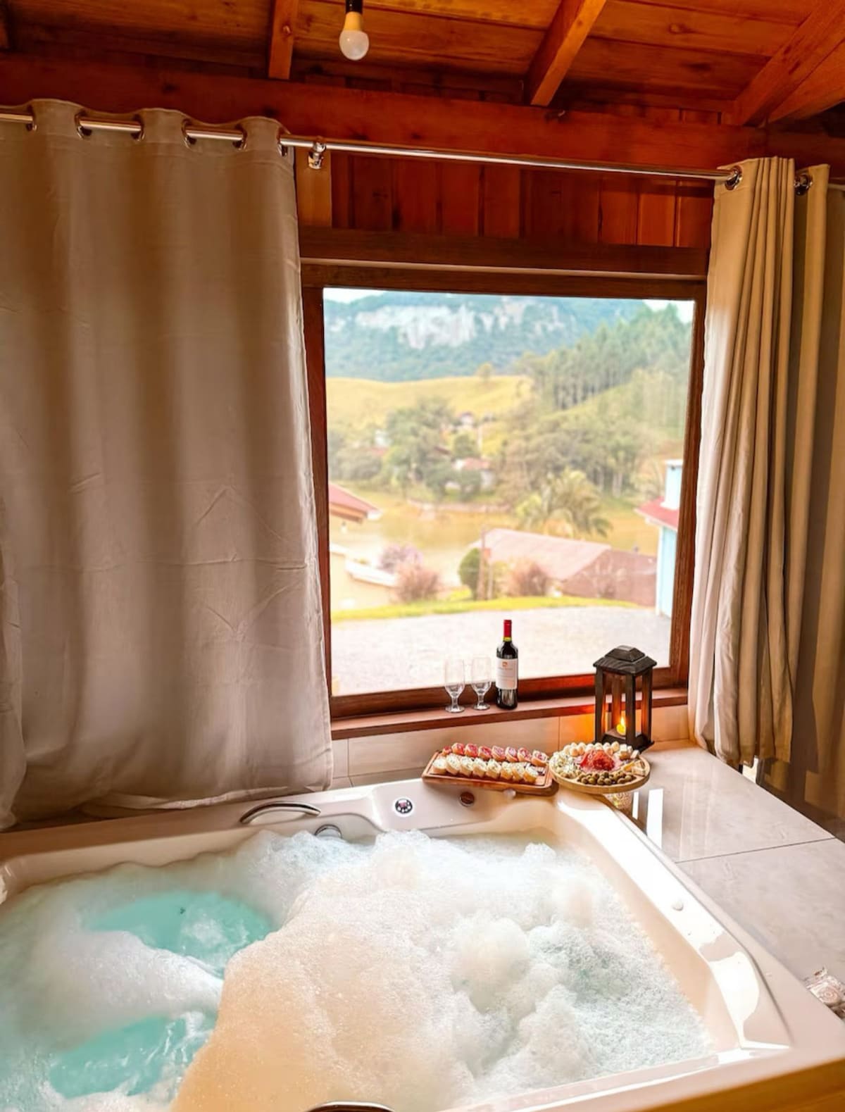O chalé Ora do @chalespanini conta com: Cozinha totalmente equipada, micro-ondas, forno elétrico, liquidificador. Oferecemos também itens essenciais como sal, açúcar, café e detergente. A cama é super confortável com roupas de cama e banho de qualidade. A lareira proporciona um ambiente agradável nos dias frios. Oferecemos lenha para a estadia. Banheira de hidromassagem para casal, com sais de banho. Chuveiro e torneiras aquecidas a gás com uma linda vista para a natureza.
