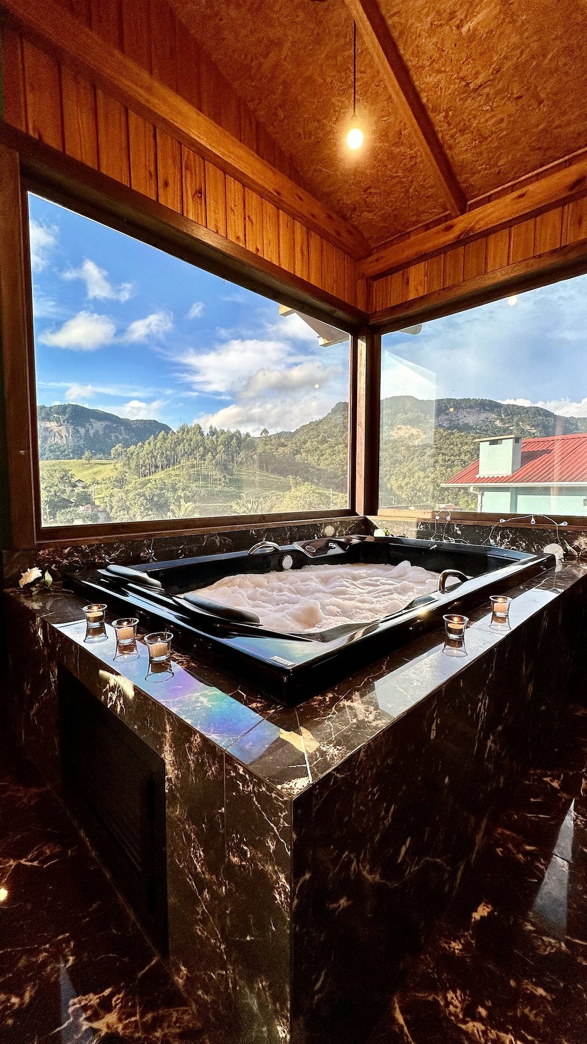 Chalé Refúgio com Banheira e Vista Incrível 🌄 Desperte com uma vista deslumbrante para arrozais e montanhas no Chalé Refúgio. A suíte oferece cama king-size e uma banheira de hidromassagem para casal, perfeita para relaxar. Com lareira central, cozinha equipada e uma varanda com vista incrível, é o cenário ideal para momentos exclusivos e aconchegantes. A apenas 5 minutos do Centro, com fácil acesso às cachoeiras e à rota de cicloturismo. ✨ Reserve agora e viva o romance em meio à natureza!