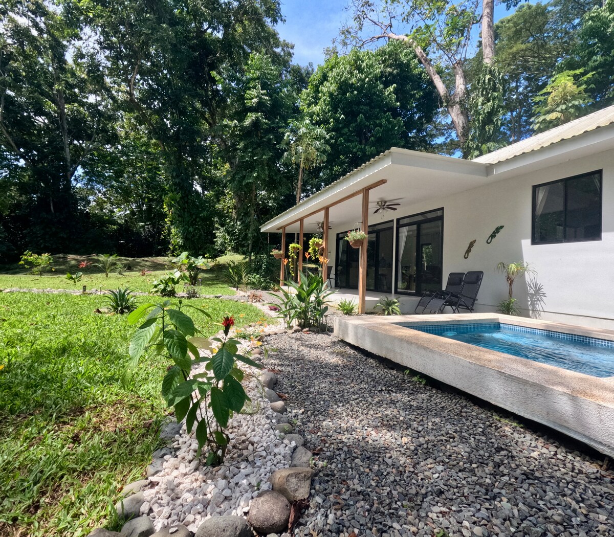 Wake to birdsong and the gentle sounds of the jungle in your Caribbean vacation home, just steps from the soft sands of Playa Negra. This cozy retreat features two bedrooms, two bathrooms, a fully equipped kitchen, and a spacious, beautifully designed veranda. Enjoy high speed fiber internet and secure parking within a gated property. Surrounded by a tropical garden, experience the authentic spirit of Costa Rica.
