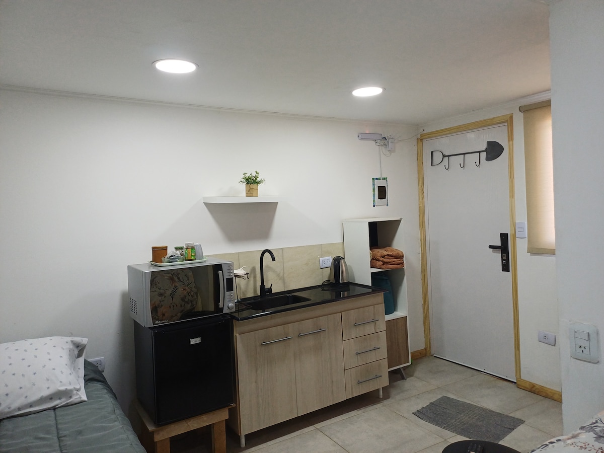 Disfruta de la sencillez de este alojamiento tranquilo y céntrico. Excelente para descanso con todas las comodidades! Luminoso y calido, equipado para dos personas. Muy cercano a comercios, oficinas y bares de la ciudad.