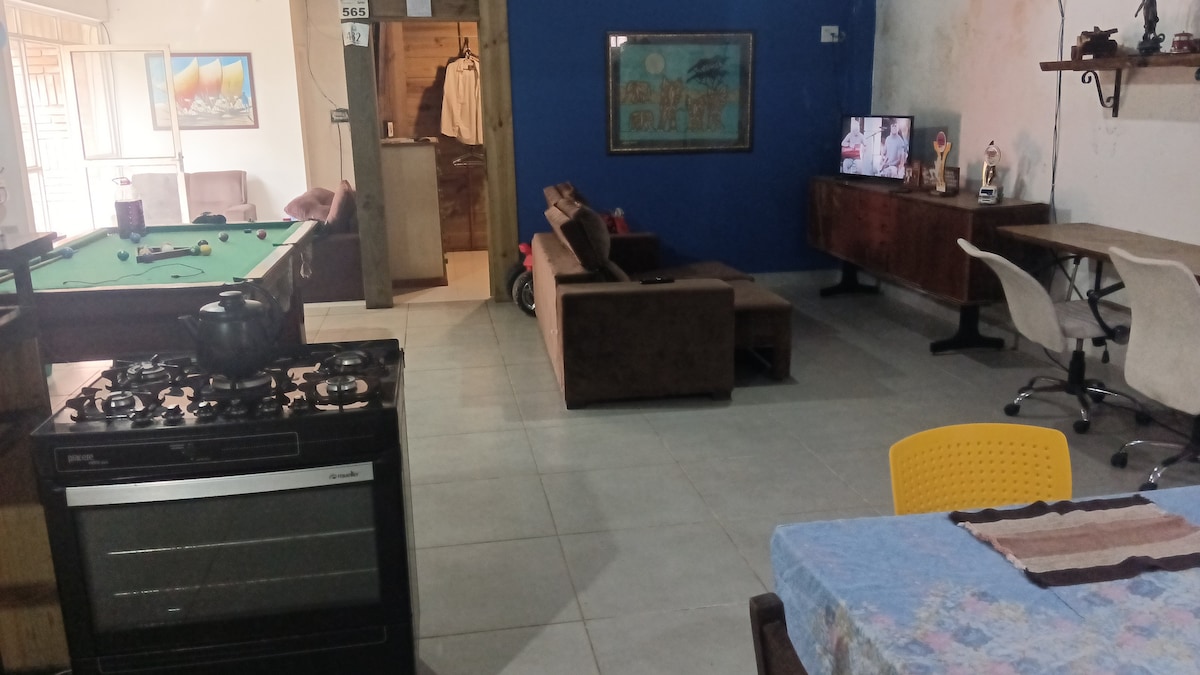 Relaxe em um ambiente descolado. Ideal para casais, grupo de amigos até quatro pessoas ou família pequena. Uma cama de casal super confortável. Com espaço para um colchão de casal ou 2 de solteiro estendidos no piso. Lembre ē um espaço de 52 m2 sem divisões. Super próxima da praia só quatro quadras no ABC IX . Otima localização para banho.