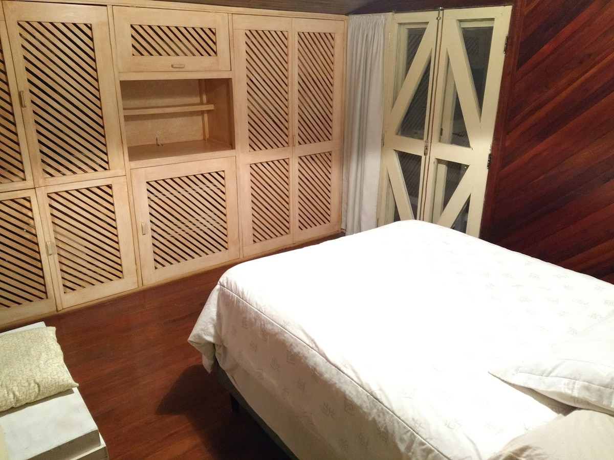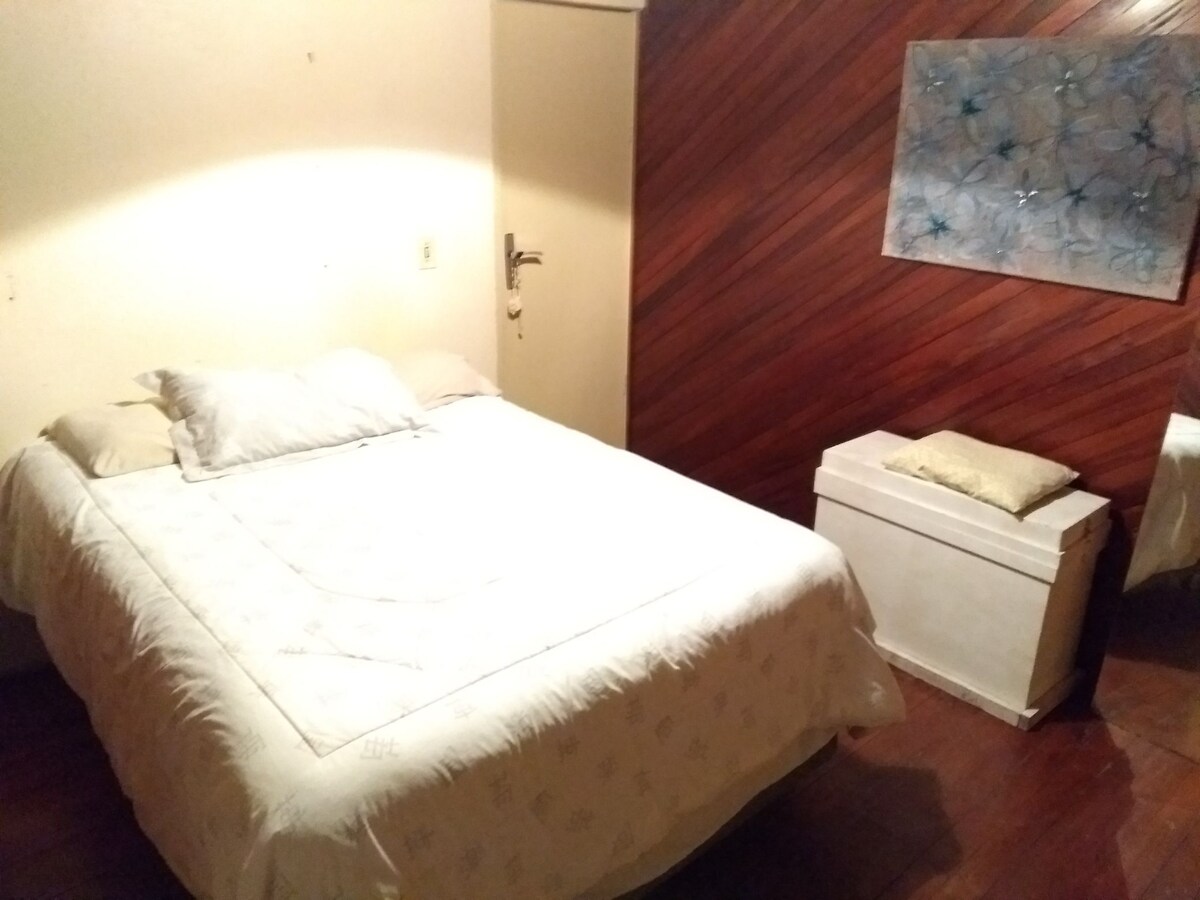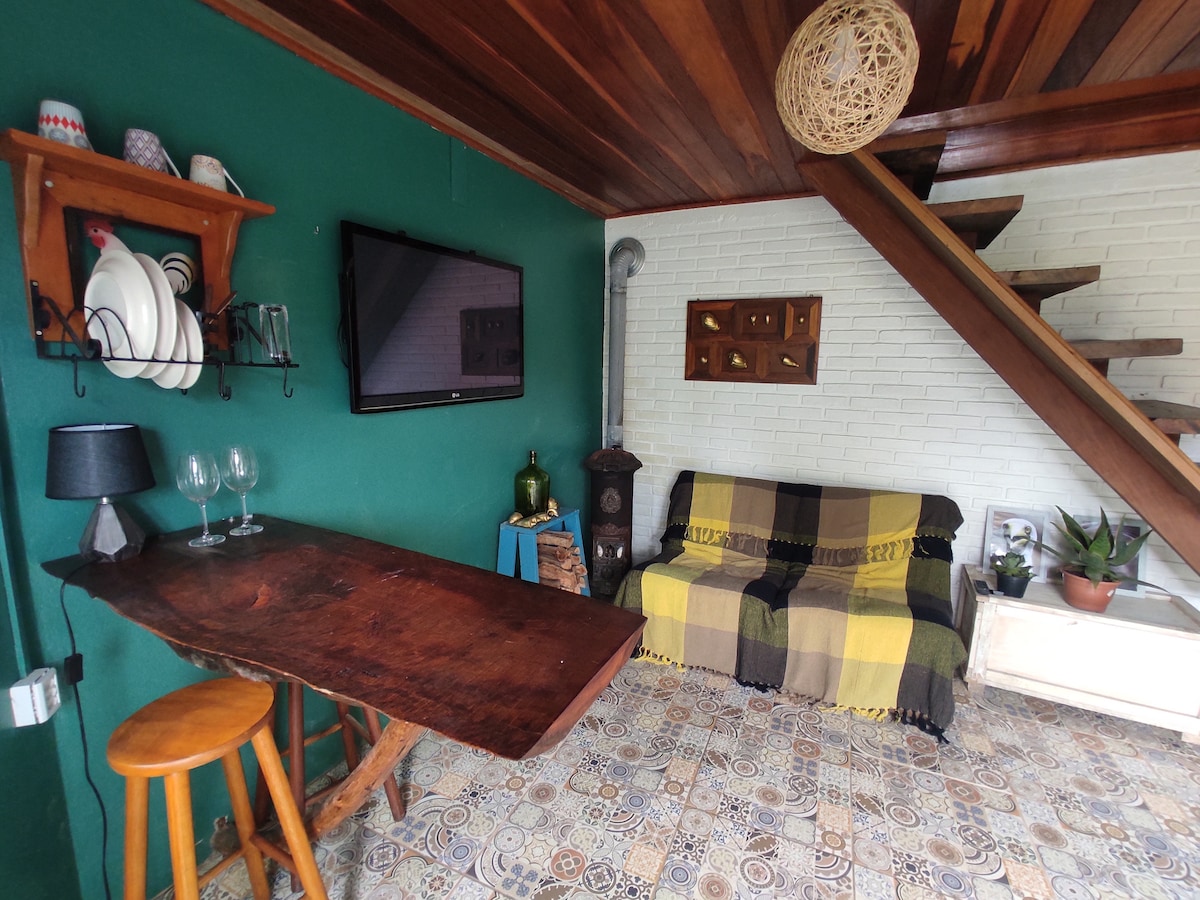 A casa de arquitetura alemã conta com um chalé que possui um sofá cama e duas camas de solteiro, comportando até quatro hóspedes. Possui banheiro privativo e ar condicionado. Contamos também com um espaço disponível para coworking e realizações de eventos, festas e retiros.