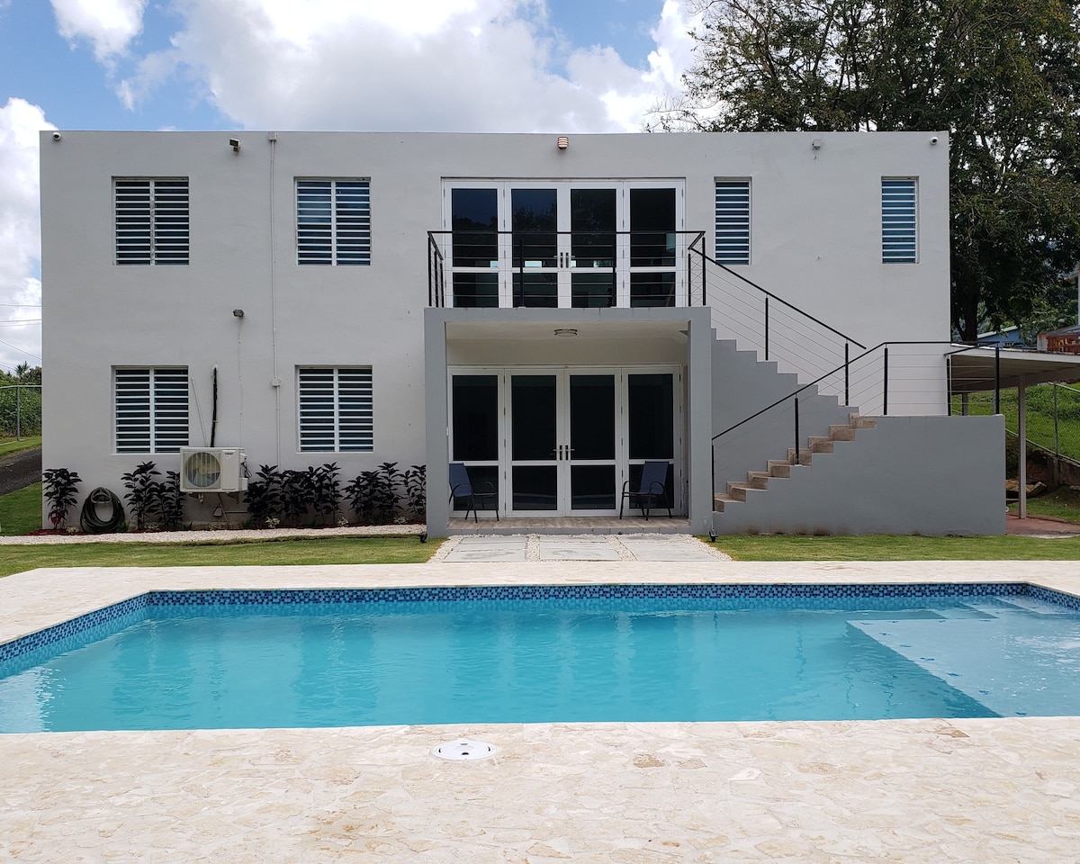Enjoy our beautiful home with panoramic views, privacy and comfort. An infinity pool. ( heated year around at 85 degrees)Brand new kitchen and furnishings. We are only 35 minutes from the airport and 45 minutes to the heart of old San Juan. Enjoy bird watching surrounded by nature. Our home has AC in the common areas and bedrooms. We have a water backup system and solar panels with a Tesla battery. No Uber service, car rental is necessarry.