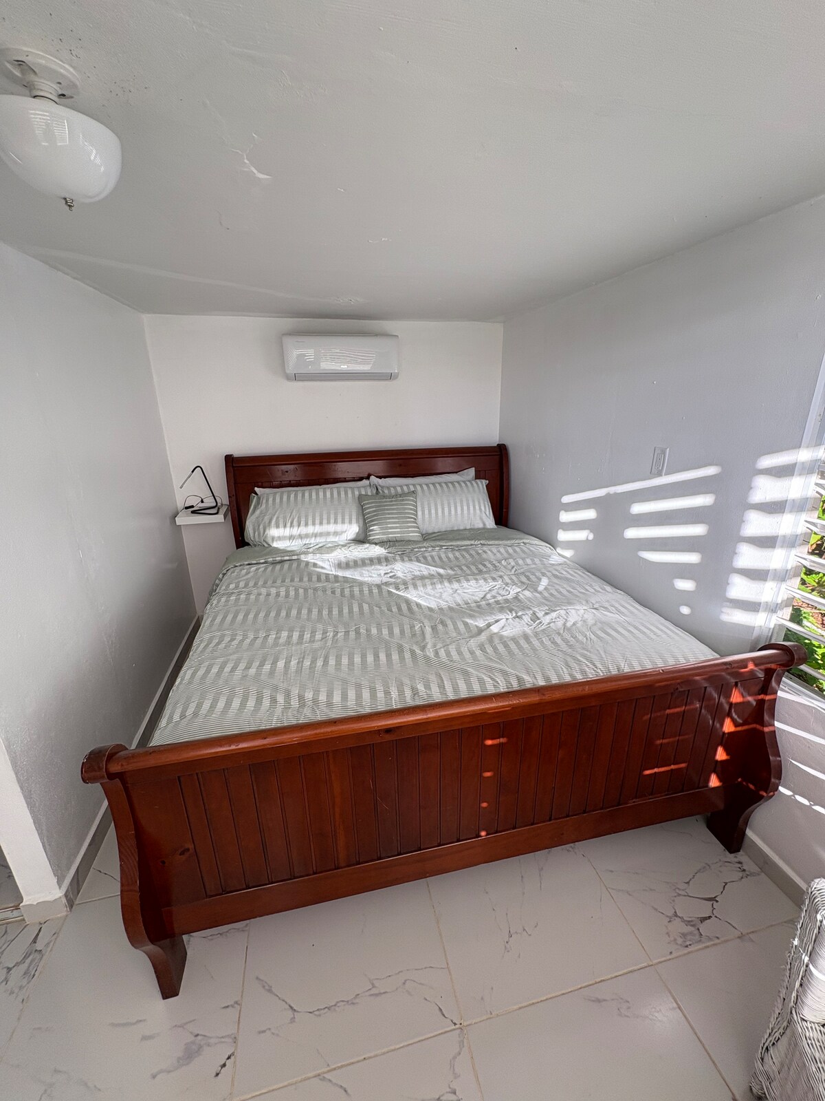 Ofrecemos a nuestros huéspedes un espacio con cocina y utensilios básicos, la cocina cuenta con microondas, tostadora, horno, cafetera y nevera. Sala cuenta con un mueble AC/C comedor. Ofrecemos una habitación que consta de una cama tamaño queen a/C T.V pequeño en la habitación, Wifi y Roku( con su propia cuenta) también pueden acceder a dos baños uno dentro de la casa y el otro esta ubicado en el área de la piscina. Hay una piscina 3@6 de profundidad. En la residencia hay agua caliente.