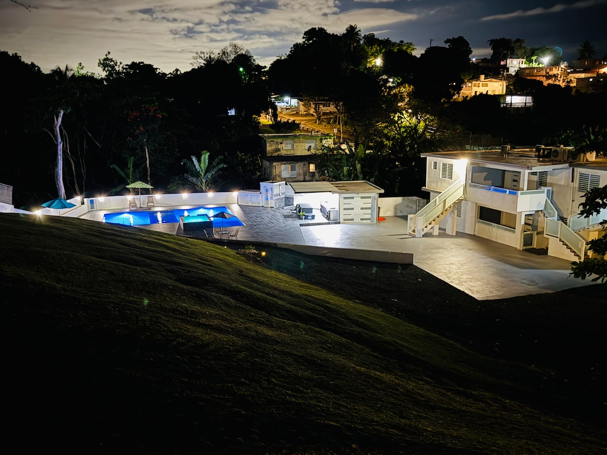 Enjoy an unforgettable stay at our property set on 2 private acres, surrounded by peace and nature. The house features a private pool, open outdoor spaces to relax, and plenty of room to enjoy with family or friends. Our property is equipped with a solar power system in case of a power outage. Experience the magic of PR in this cozy home nestled at the base of the majestic El Yunque. Wake up to the sound of birdsong and the gentle whispers of nature, surrounded by a peaceful and private setting.