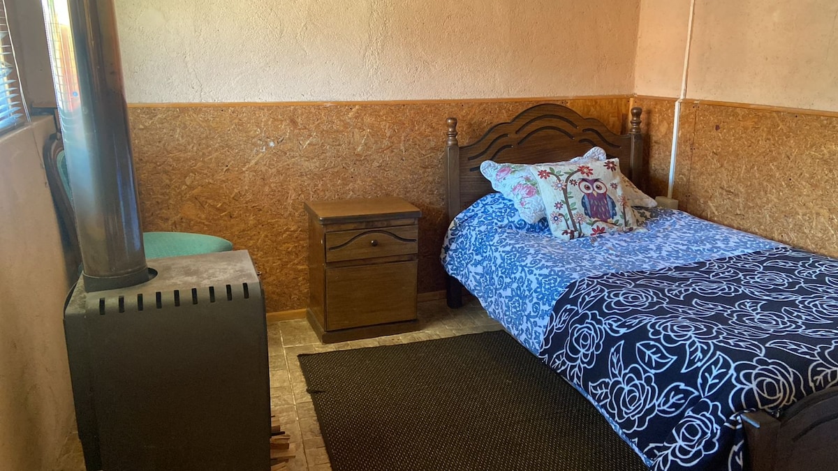 Este acogedor departamento de dos ambientes cuenta con una habitación amplia con cama de dos plazas y una cama individual. Dispone de sofá, mesa de comedor y cocina completamente equipada. Amplio baño y calefacción a leña con combustión lenta. Cuenta con internet satelital, estacionamiento privado y entrada independiente. Entorno tranquilo, ideal para parejas o familias pequeñas que buscan descanso y comodidad en la Patagonia. A tan solo 24 km de las Capillas de Mármol Río Tranquilo. Acceso 24/7