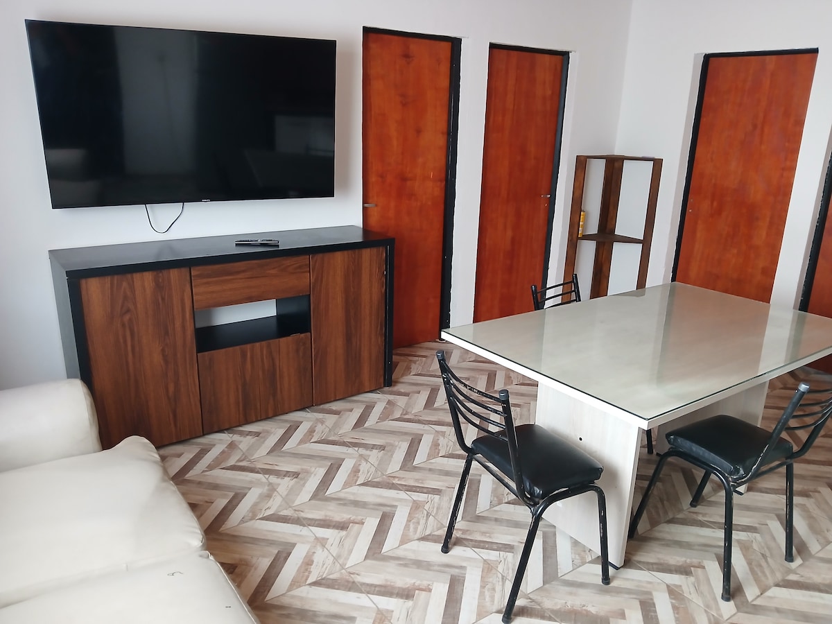 Departamento amplio apto para matrimonio y/o 3 huéspedes adultos, ya que cuenta con un sofa cama en el living. Cocina y utensilios listos para cocinar A media cuadra de la avenida central Excelente iluminación Cuenta con lo esencial para preparar su desayuno (té, cafe, azúcar, etc)