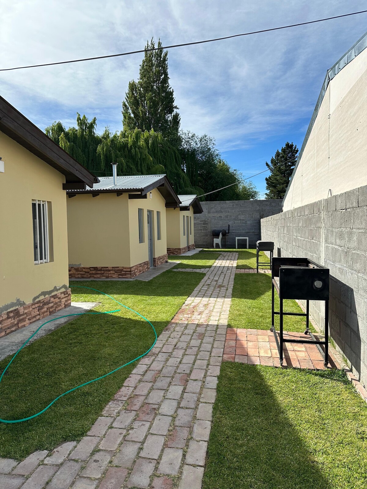 Monoambiente moderno y luminoso en pleno centro, ideal para dos personas. Cuenta con cama matrimonial, WiFi, Smart TV, cocina equipada, frigobar y patio con césped. A 3 cuadras de la terminal y cerca de plazas y comercios. Bright and modern studio in the city center, perfect for two. Features a double bed, WiFi, Smart TV, equipped kitchen, mini fridge and a grassy patio. Just three blocks from the bus terminal and close to shops and plazas.