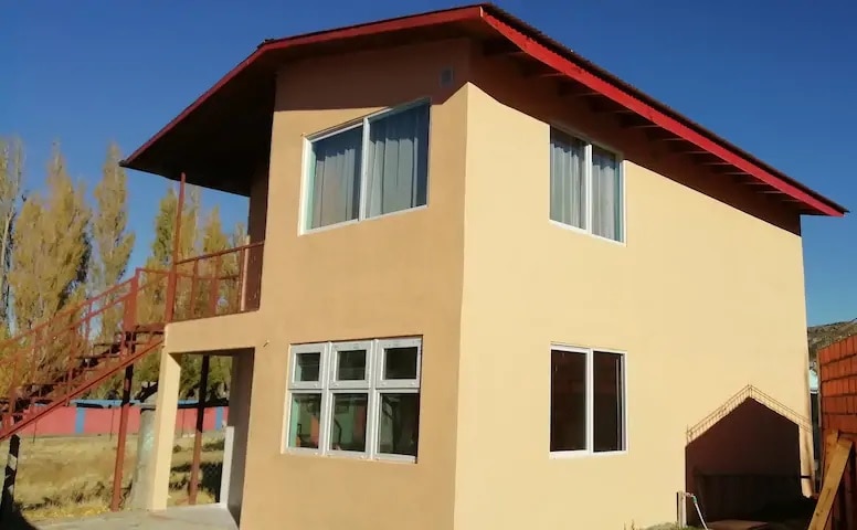 Cabin 500 meters from Villa Cerro Castillo, at the foot of the National Park and steps away from the trekking trail to the Laguna, Rio Ibañez, climbing routes, bike trails, and horseback riding. 1 bedroom on the first floor and another on the second floor, 1 bathroom, living room with integrated small kitchen. Accommodates 2 people (max 4). Breathtaking views of Cerro Castillo with a border along the Estero del Bosque. Ideal for 2 people who want to enjoy nature and outdoor activities.