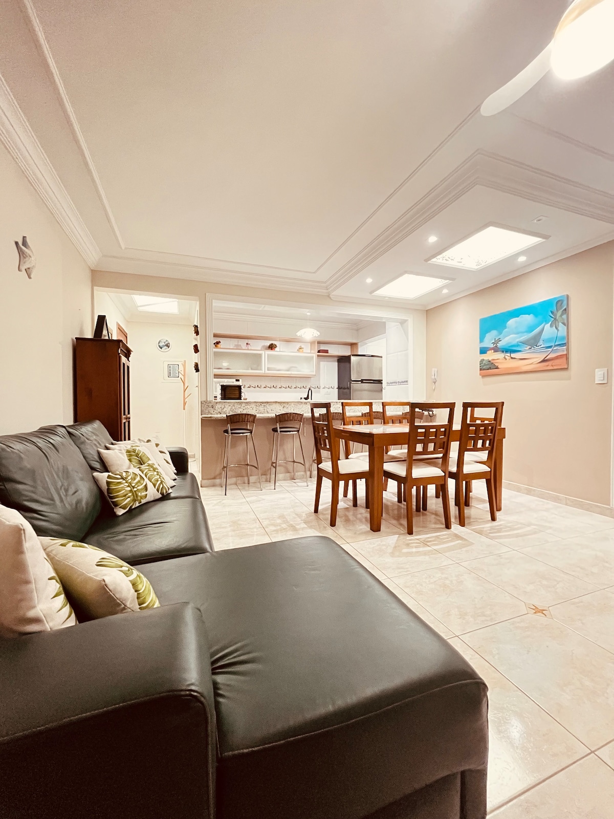🏝Apartment with panoramic view and accommodation for up to 8 people. 👨🍳 Fully Equipped Kitchen; 🍖 Barbecue Grill on the Balcony 🎲 Leisure area with sea view; 🚙 2 parking spaces (1 covered and one outdoors); It has 3 bedrooms with a double bed (1 suite), in addition, two extra places are available on the sofa bed in the living room. 🐠 Perfect space for groups of friends or families who want to experience special moments by the sea.